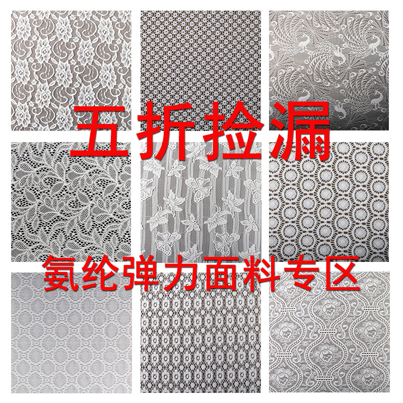 全ポリエステル無弾縦条小花レース生地黒色白色杏色現物女装童装補助材料