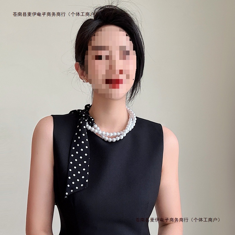 春夏パールネックレス、ロングストラップスカーフ、レディースリボン、万能ネックウォーマー、レトロ薄手スカーフ、鎖骨チェーン、蝶結び