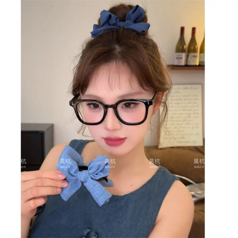 涼感のあるデニムカラーの立体的なリボン付き丸子ヘアクリップ、ハイポニーテールクリップ、丸子ヘアアクセサリー、女性用、髪にダメージを与えません