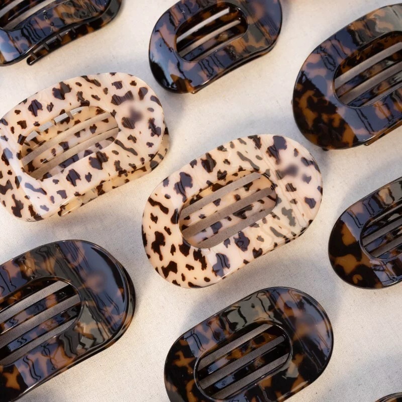 クロスボーダー爆金酢酸フラット円形髪クリップ髪飾りアーチ型ヒョウ柄デザイン高級感ファッション盤髪クリップ
