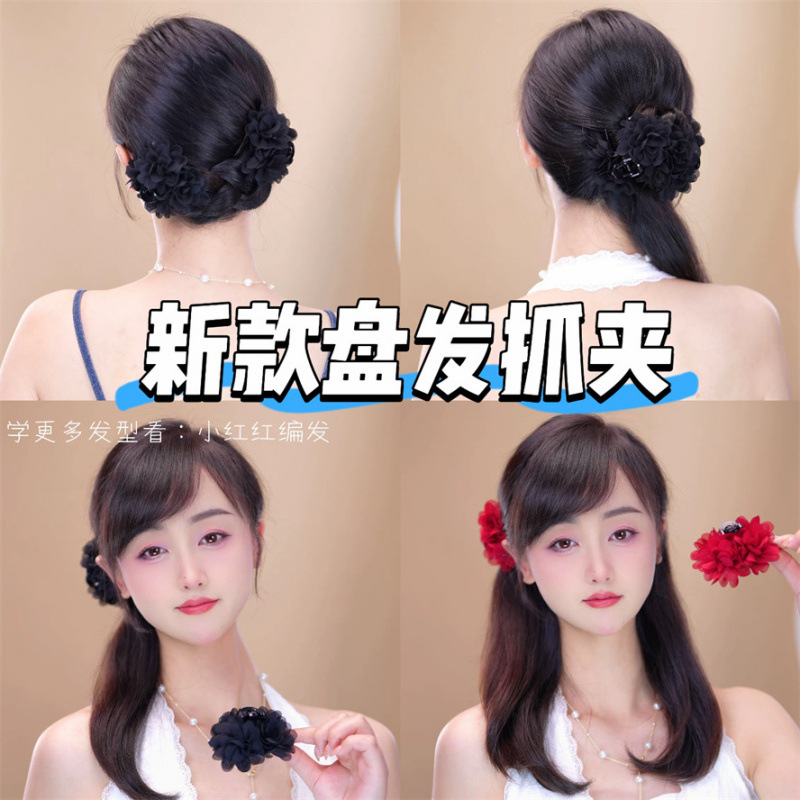 スーパーフェアリーフローラルリボンリボンクリップ夏ハイエンド多目的ヘアクリップ後頭部シャーククリップポニーテールヘアアクセサリー