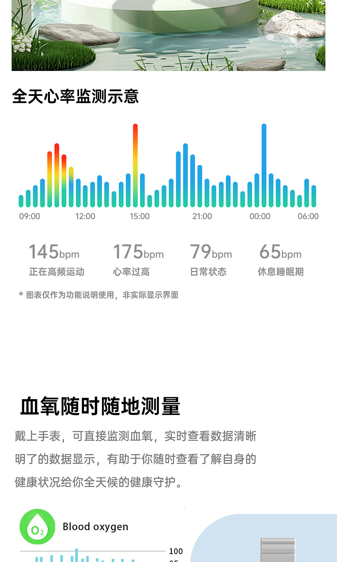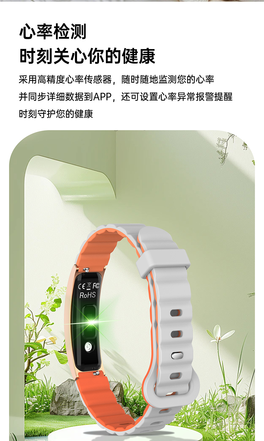 スマートブレスレットは健康、心拍数、血中酸素、睡眠モニタリング、ジェスチャー、写真撮影、スポーツ、歩数計、マルチスポーツモードを測定します。