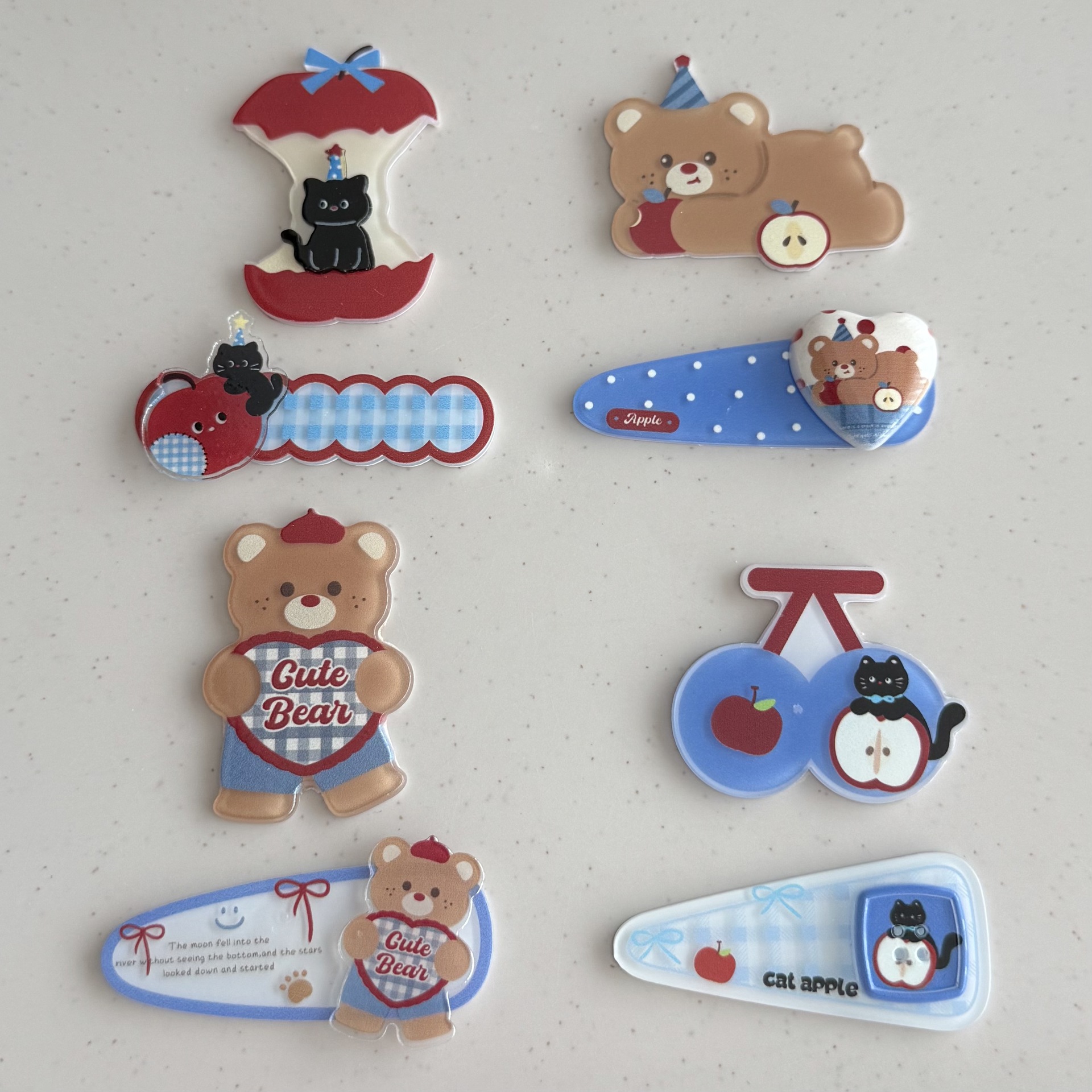 可爱卡通黄油小熊亚克力水滴樱桃猫咪苹果贴片diy发夹头饰洞洞鞋