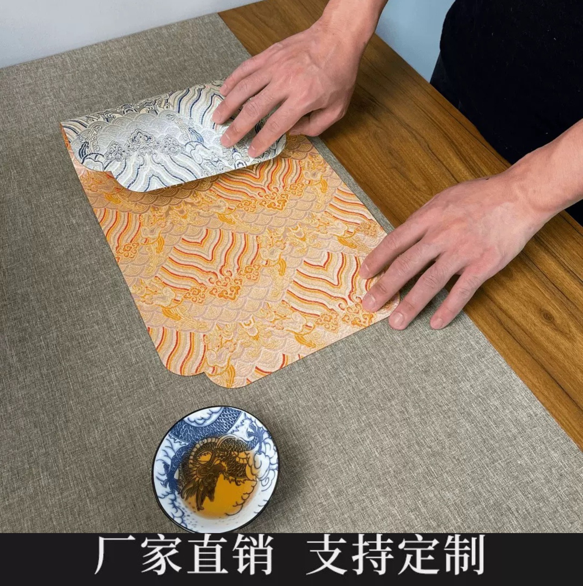 新商品の国潮両面織錦茶席茶道乾泡席宮廷雲錦国風プリントレトロ微吸水マット