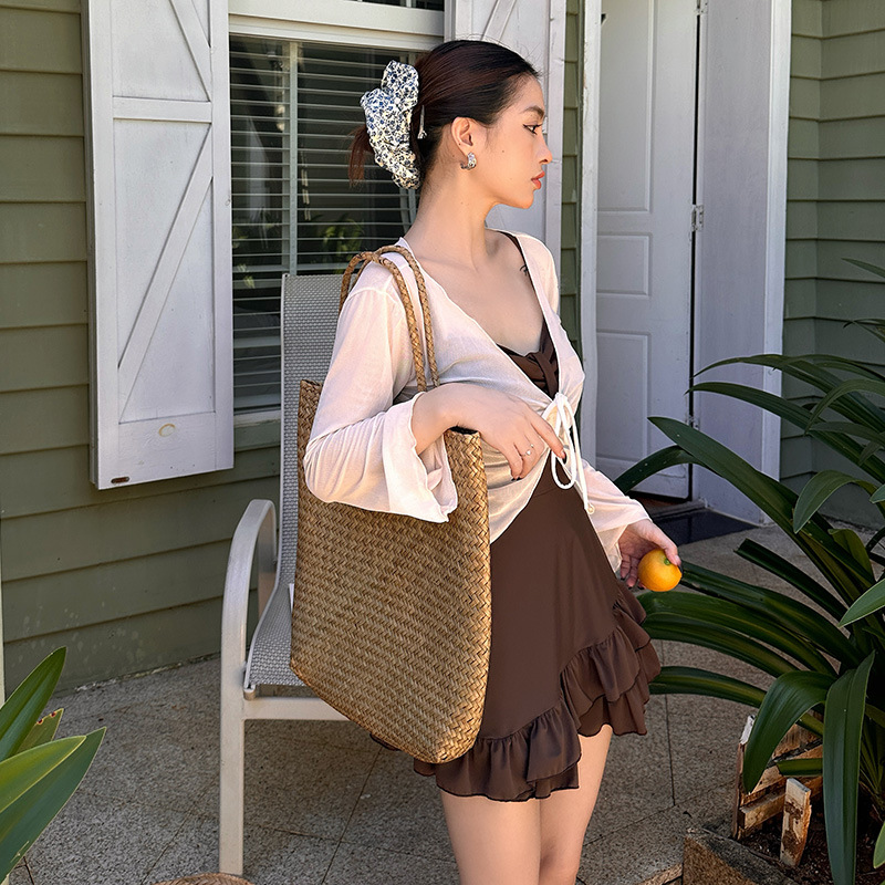 ワンピースのブラウスの女性の水着2025新型はお腹を遮って痩せています。