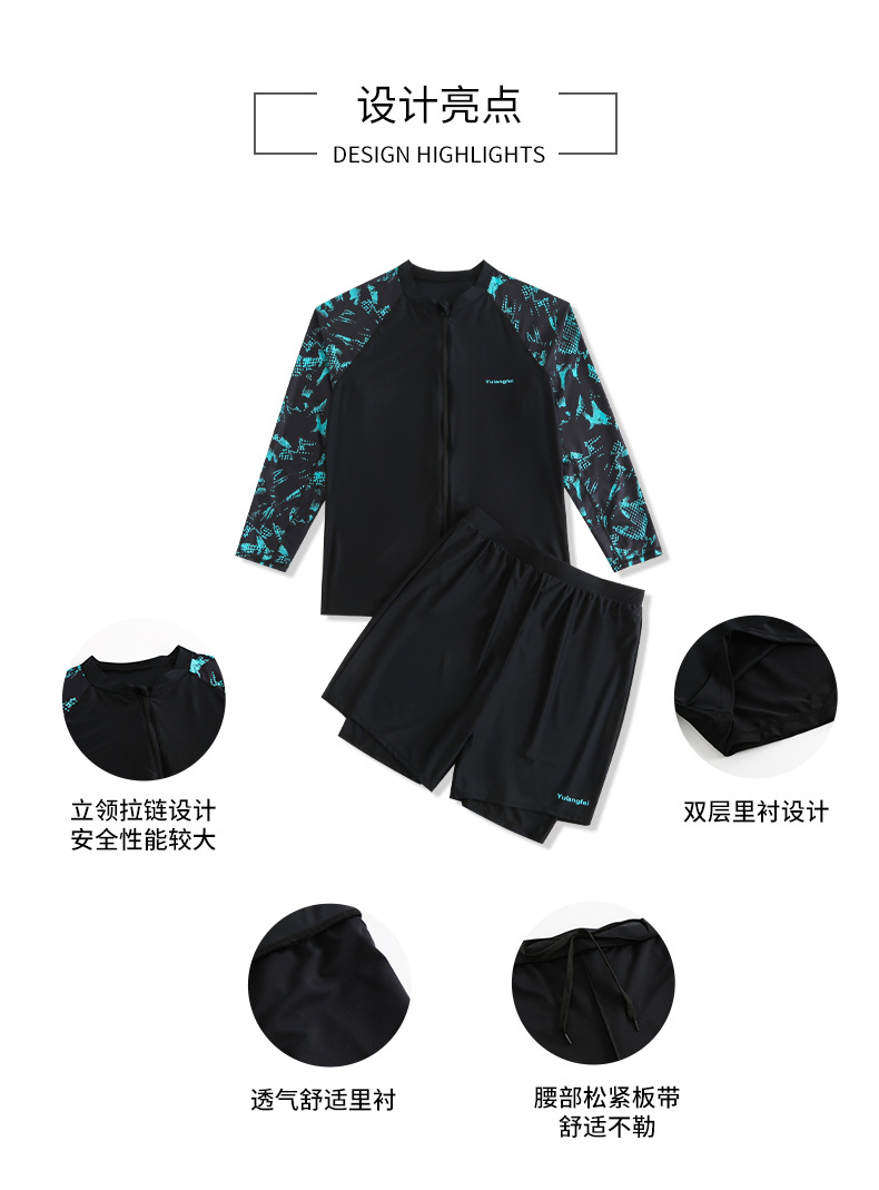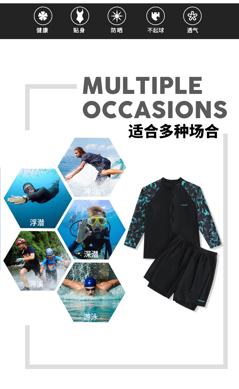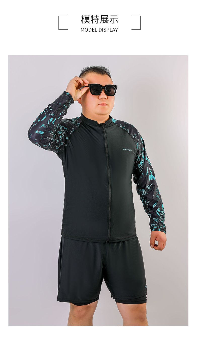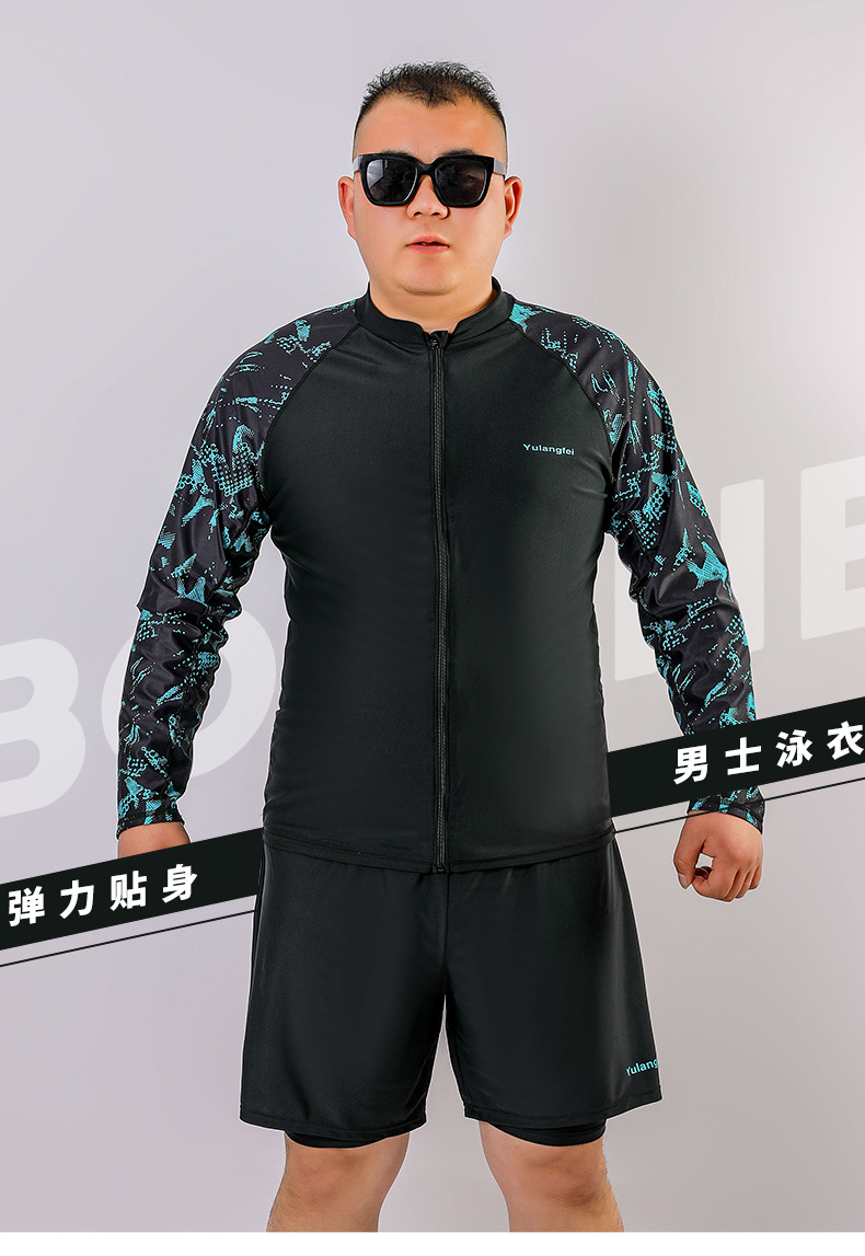 スプリット長袖日焼け止めサーフィン水着メンズプラスファット温泉休暇大人 175kg 特大水着