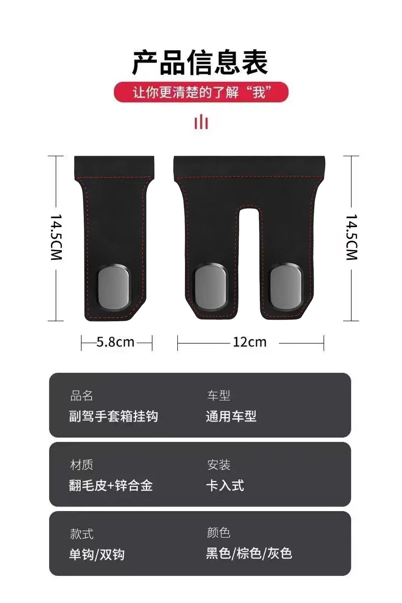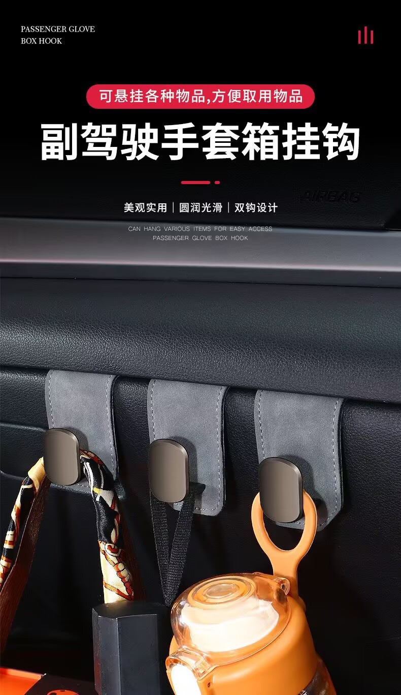 車のフック、助手席のグローブボックスフック、車のフロント収納、金属製の小さなフック、スエードレザーの車内