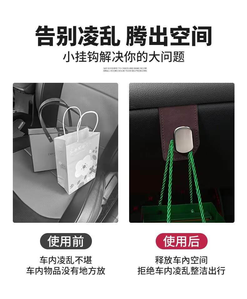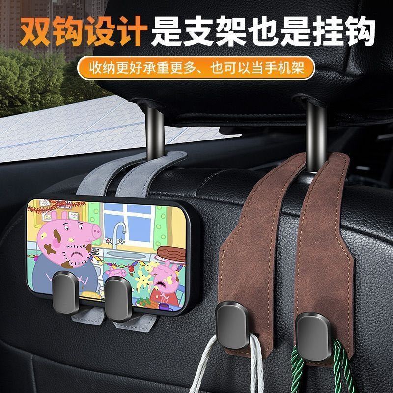 汽车挂钩金属带钻翻毛皮革车载后排座椅头枕挂钩车内收纳置物挂钩