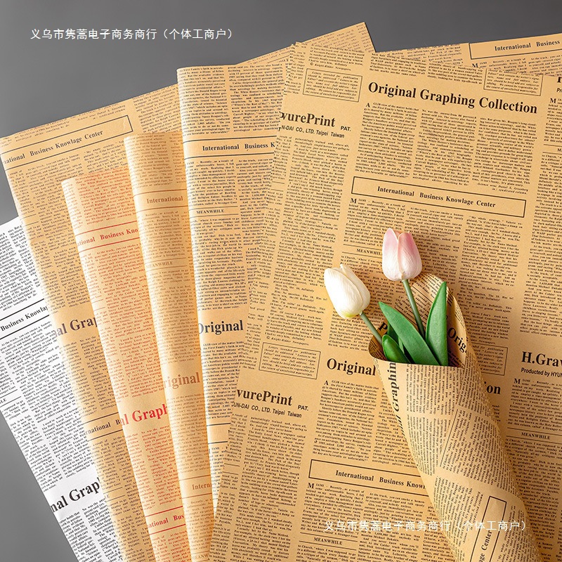英字新聞花包装紙花束包装花材フルセット花のカラーギフトレトロクラフト紙ギフト