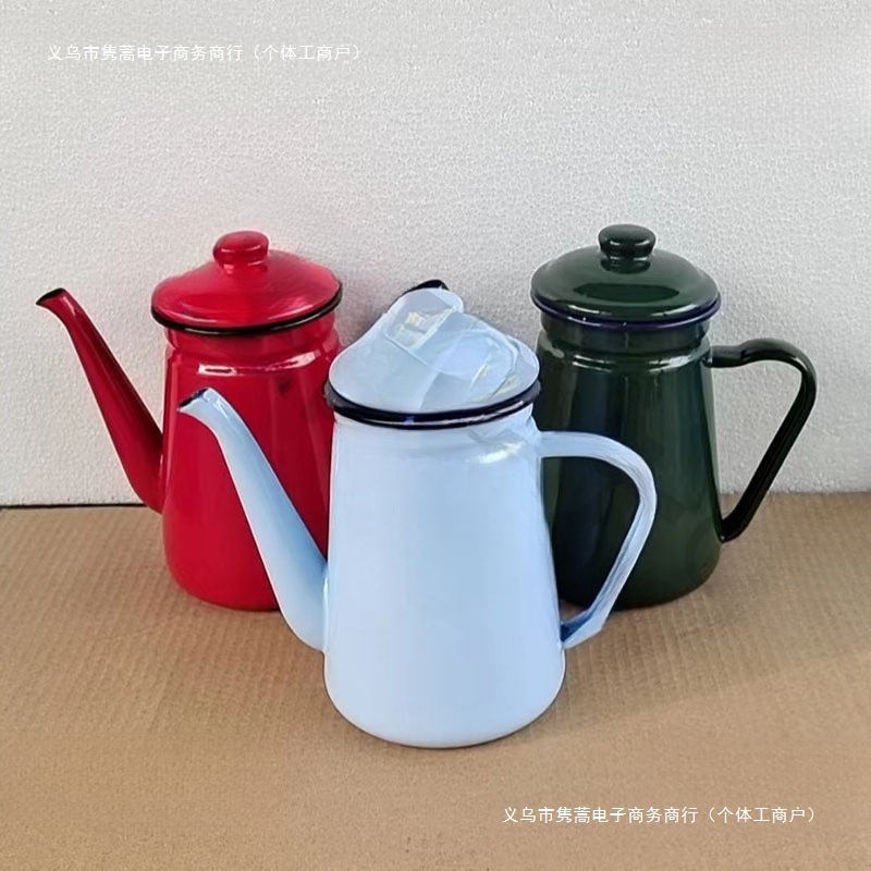 昔ながらのエナメルコーヒーポット、家庭用レストラン、ノスタルジックなレストランのティーポット、コールドケトル、ティーポット、ミルクティーポット、オイルポット、ビネガーポット