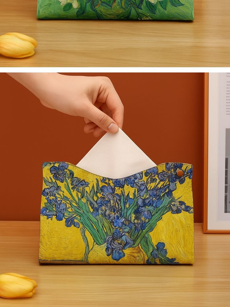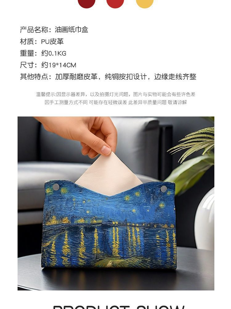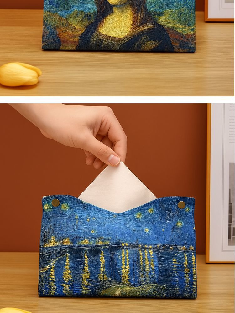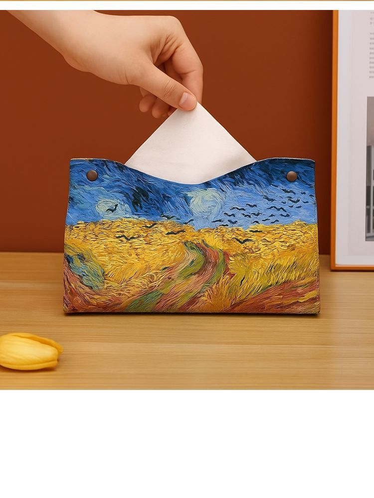 梵高复古油画皮革纸巾盒客厅家用车用办公室餐巾纸盒抽纸盒抽纸套