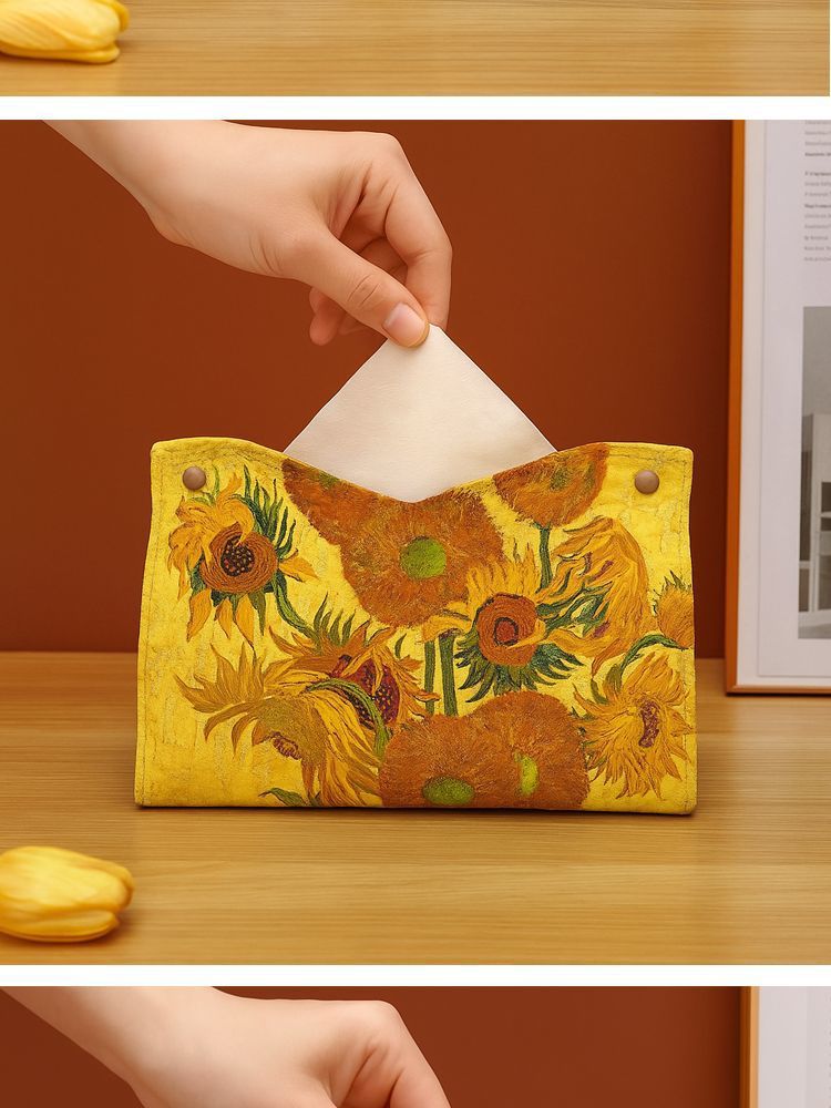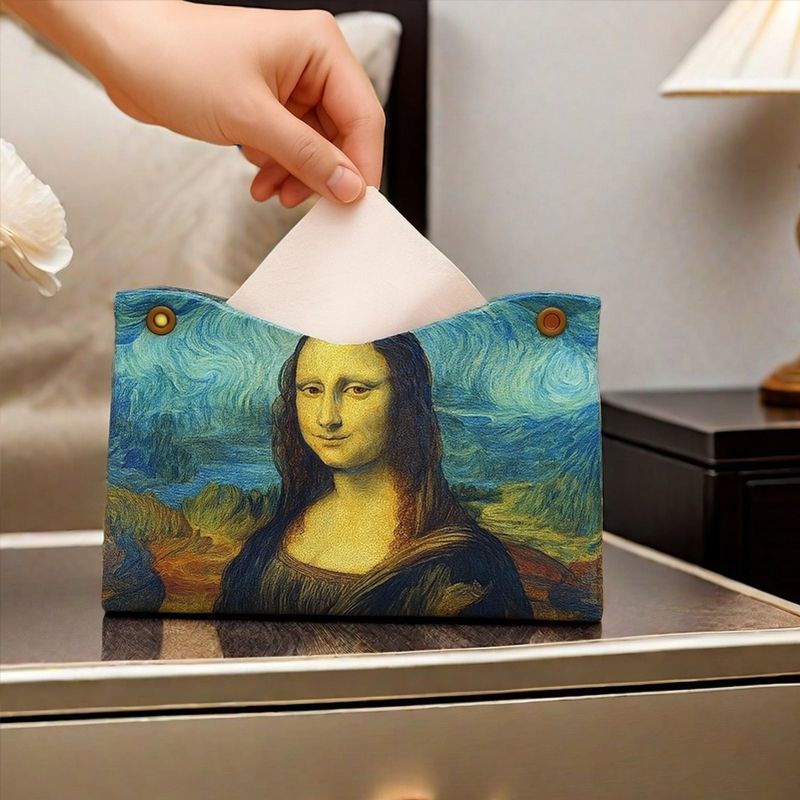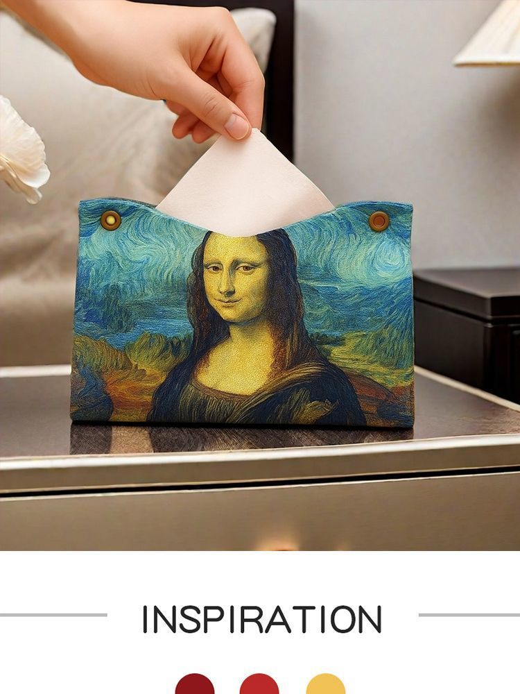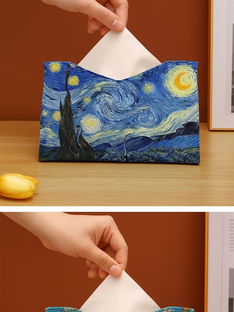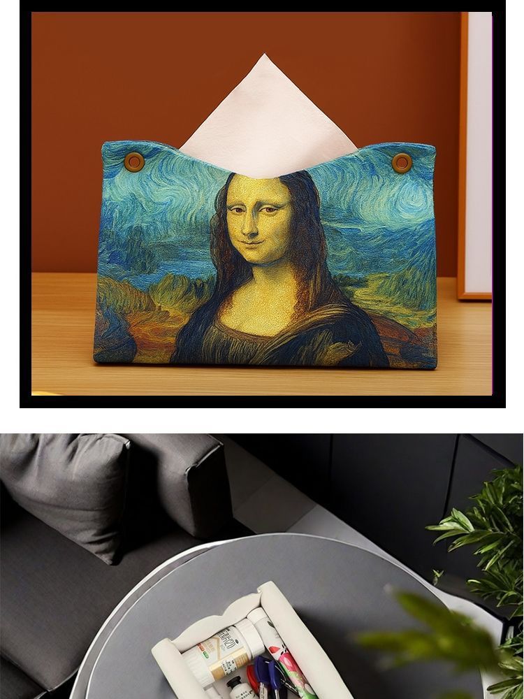 梵高复古油画皮革纸巾盒客厅家用车用办公室餐巾纸盒抽纸盒抽纸套