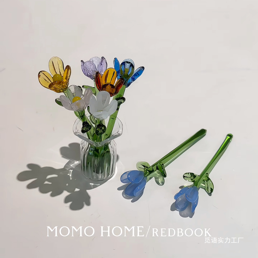 シ博の手作り瑠璃の小さい花のシミュレーションの花束の生け花のガラスの永遠の花の贈り物の清新なデスクトップの装飾の置物