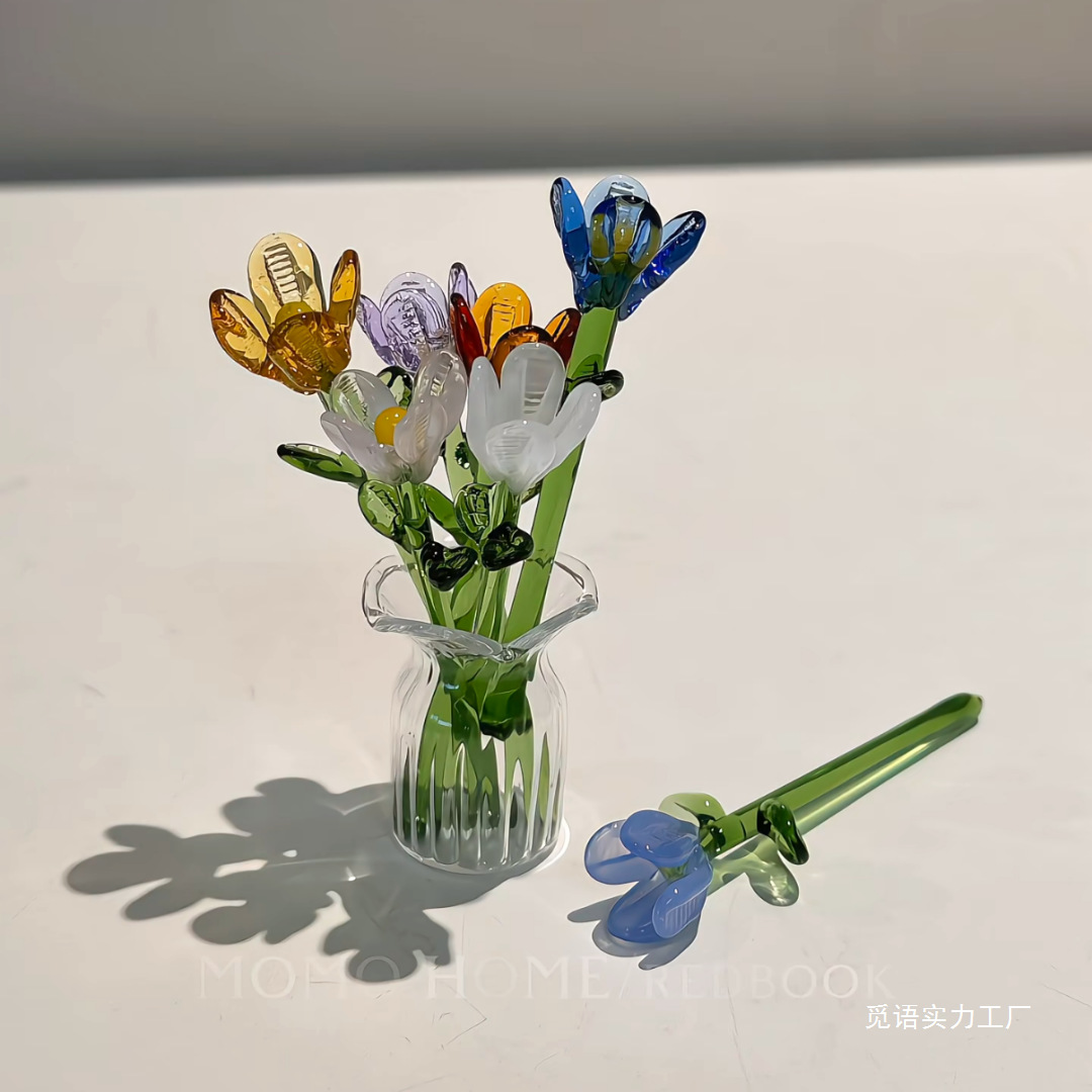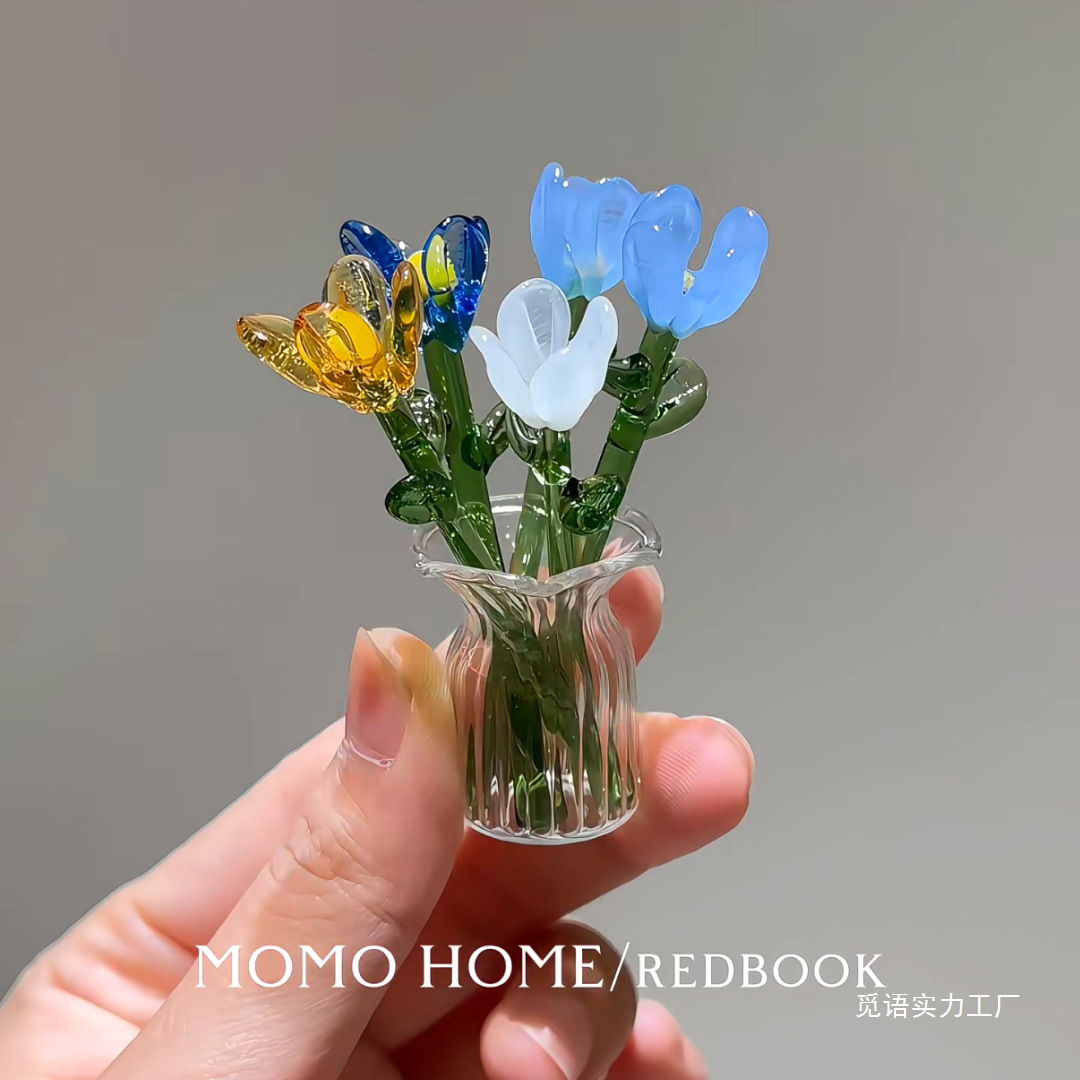ミニ花瓶装飾品チューリップガラス永遠の花束装飾品家の装飾デスクトップ装飾品女性のための