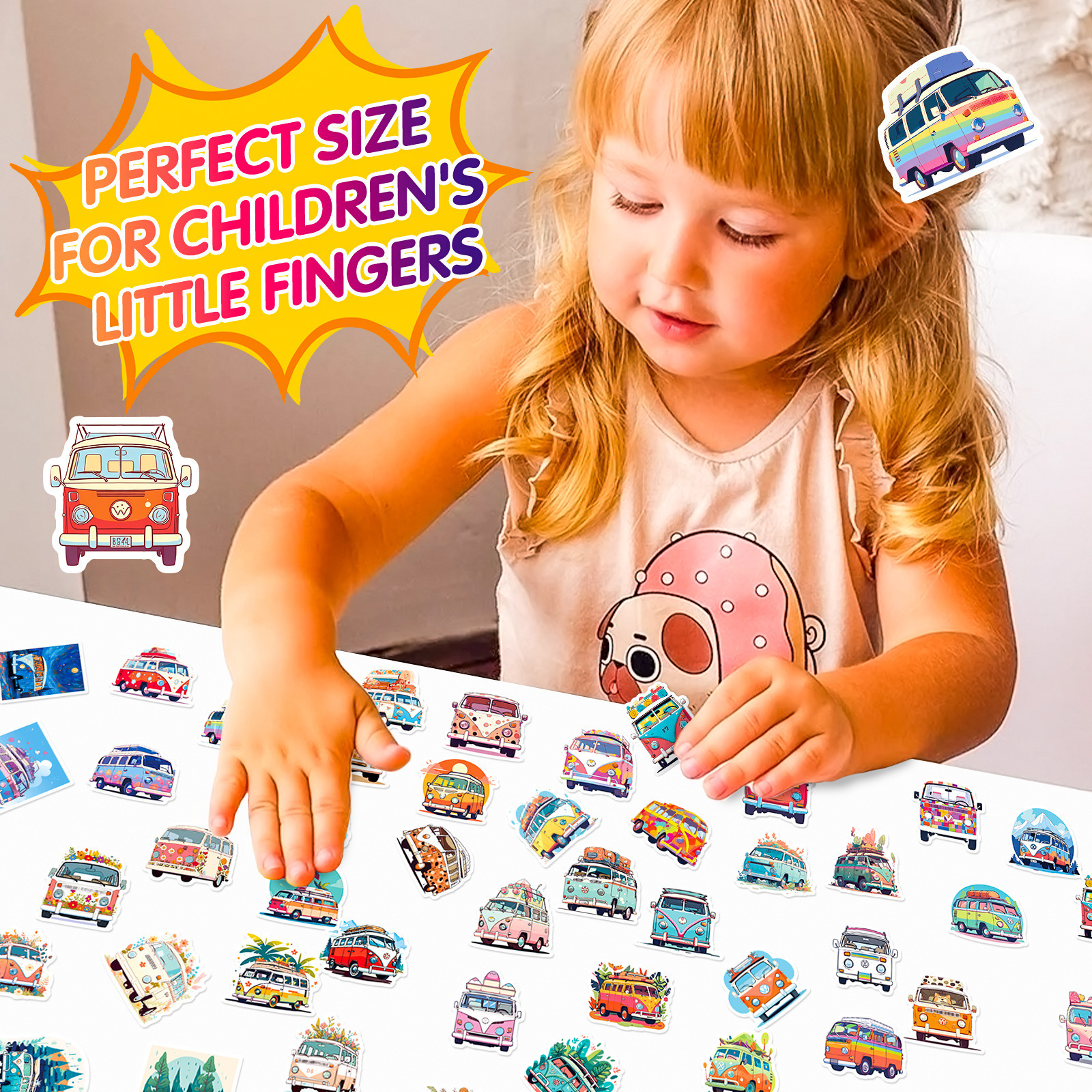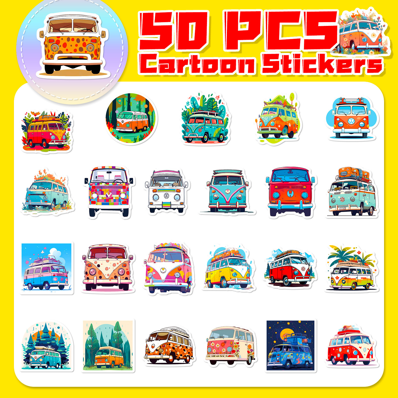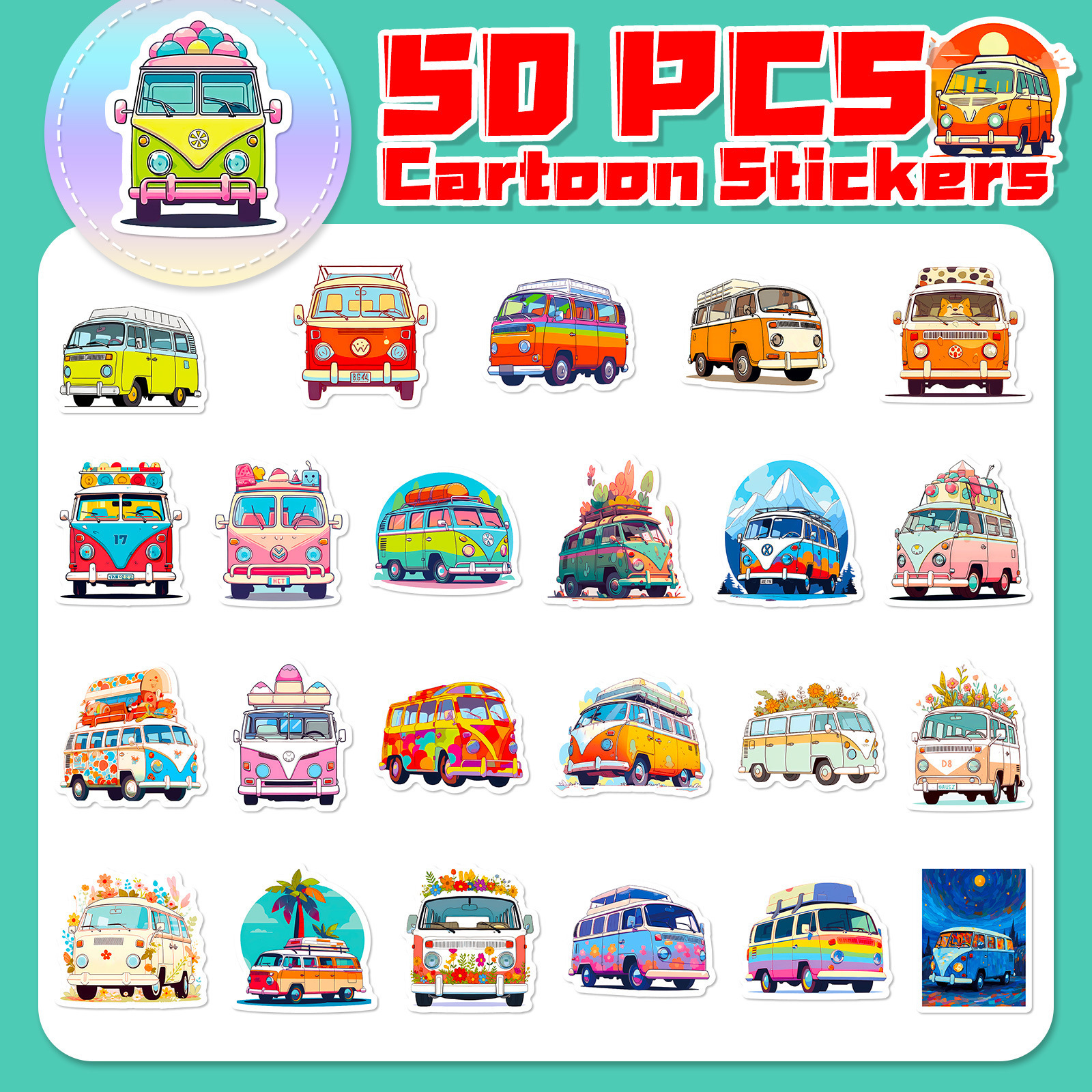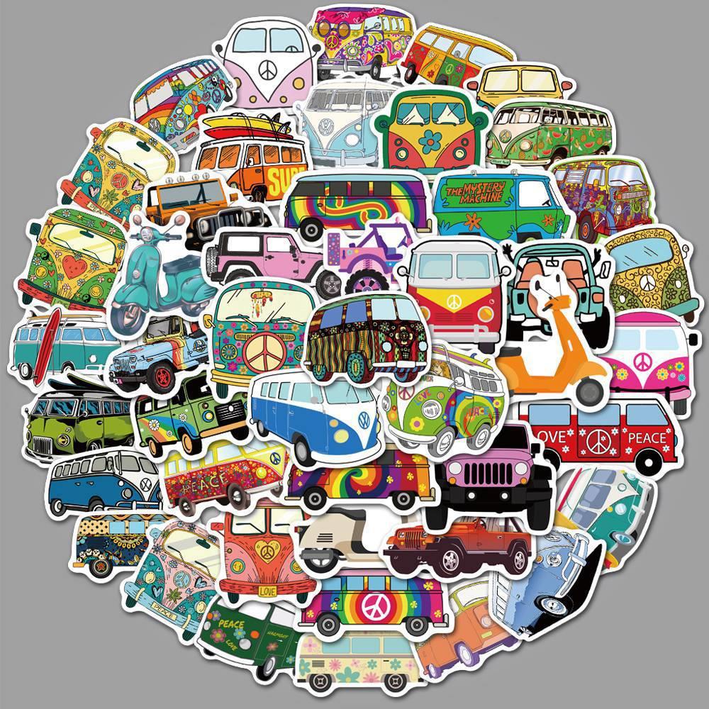 50枚花車バスステッカー漫画乗り物ステッカー子供啓蒙教育ヒップホップバス落書きステッカー