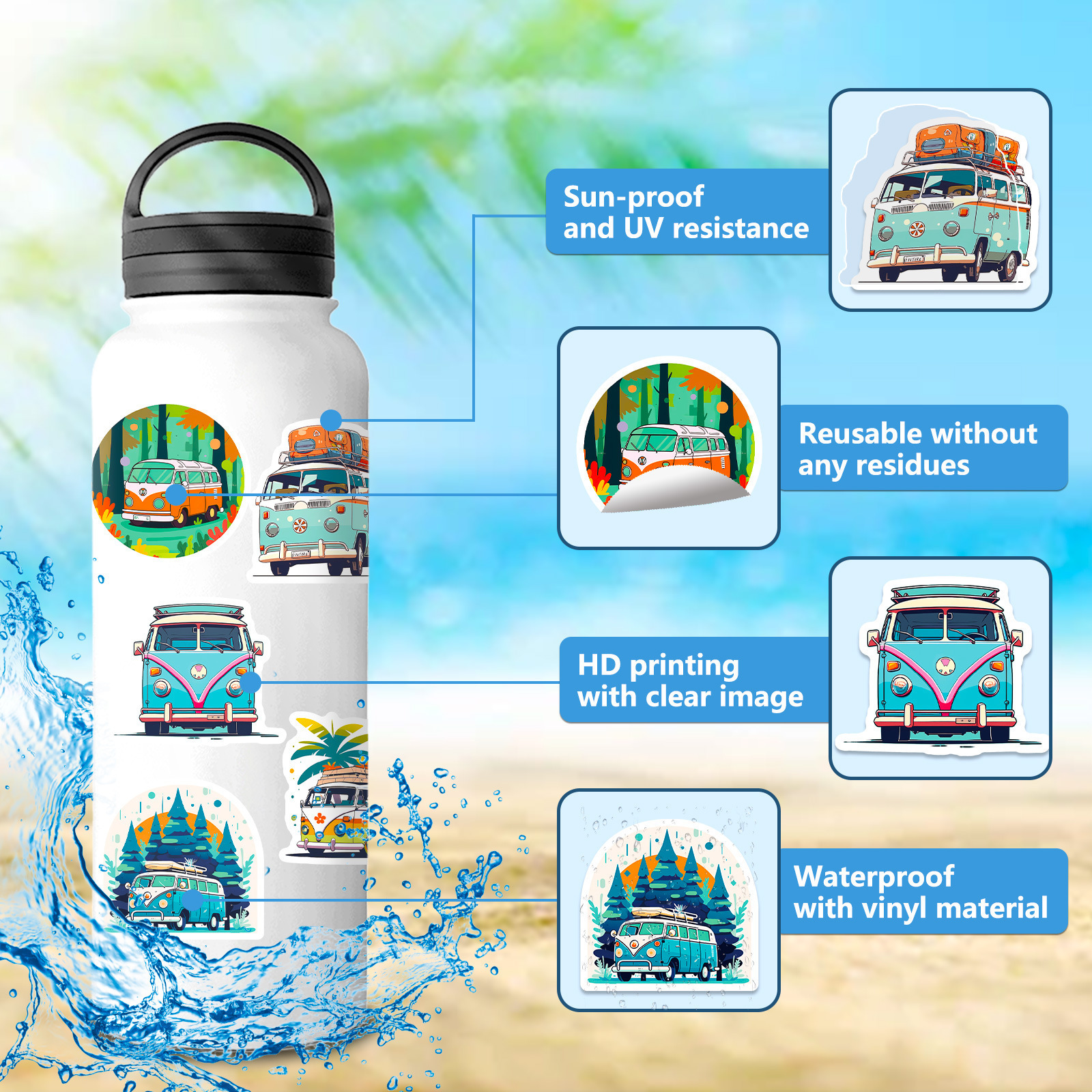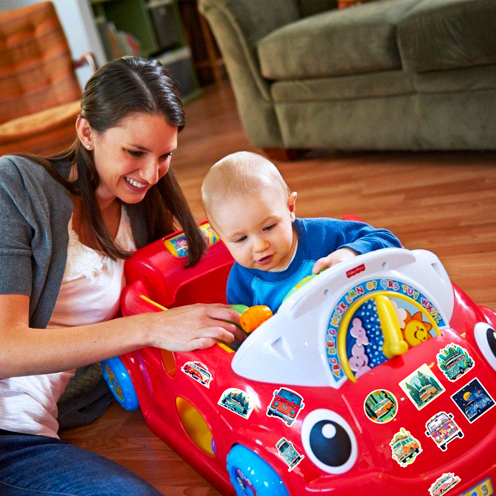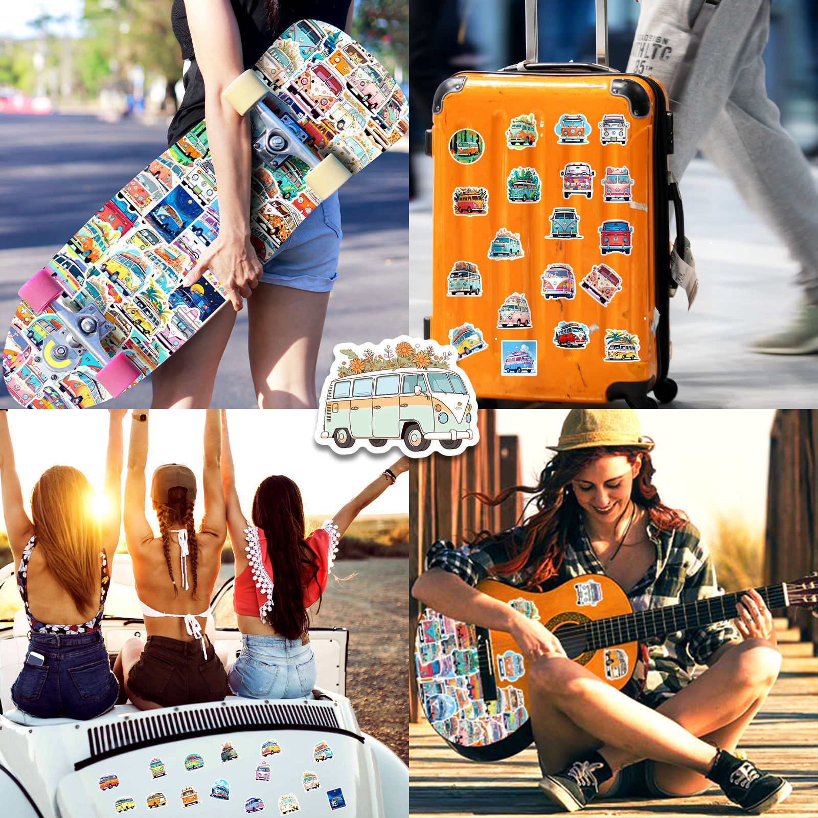 50枚花車バスステッカー漫画乗り物ステッカー子供啓蒙教育ヒップホップバス落書きステッカー
