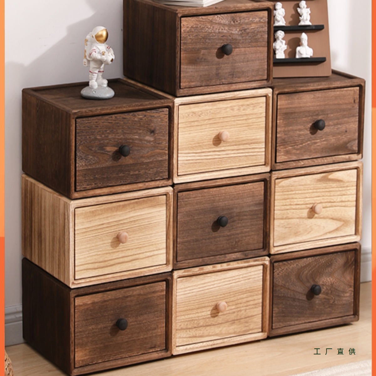全实木自由组合收纳斗柜环保无漆炭烤格子柜儿童原木风储物床头柜