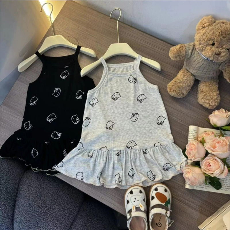 韓国子供女の子ドレス 2025 新しい夏スタイル子供のかわいい漫画サスペンダースカートベビースカート