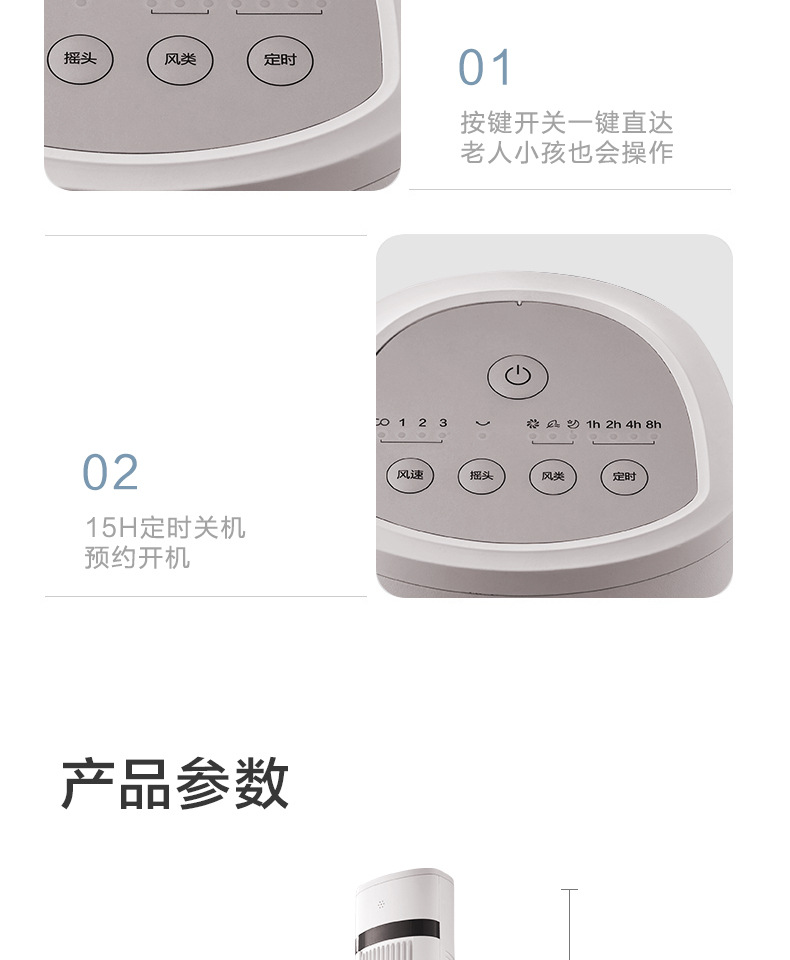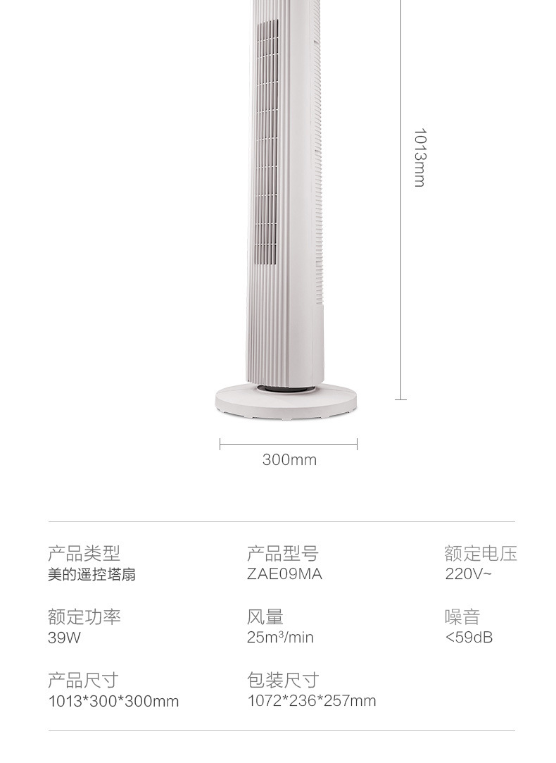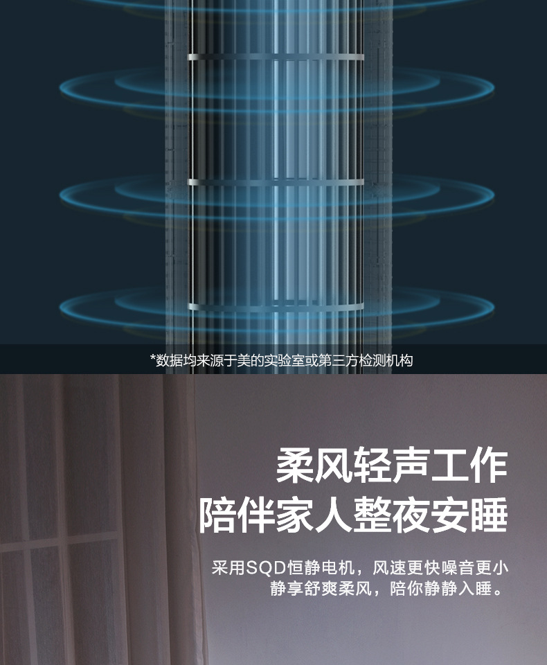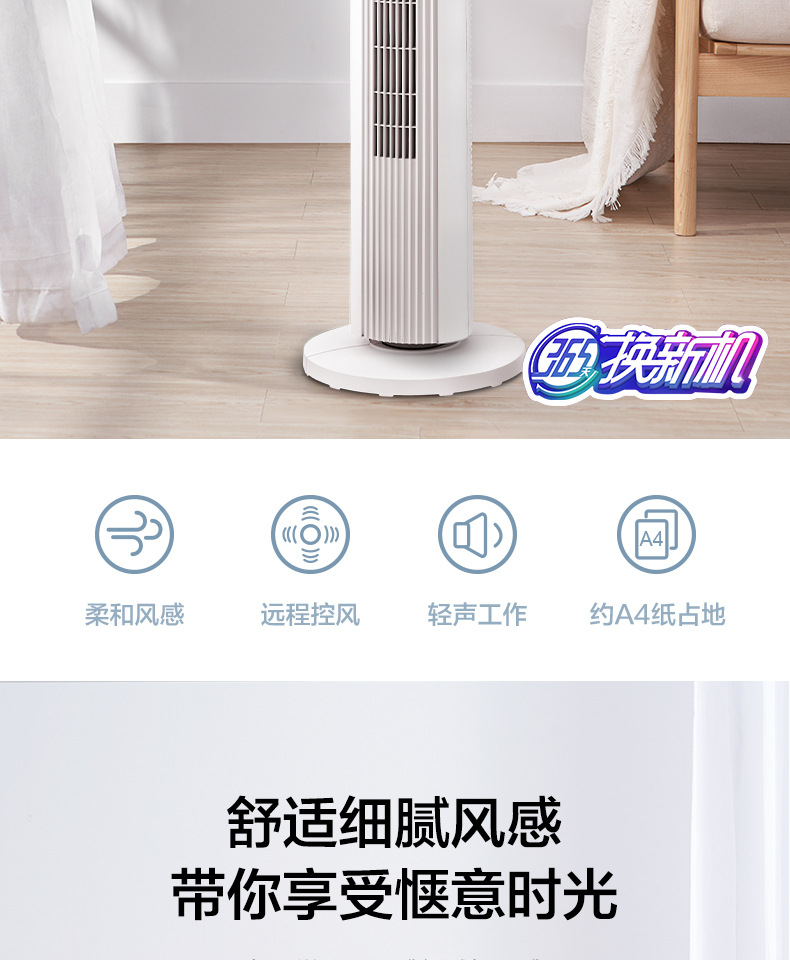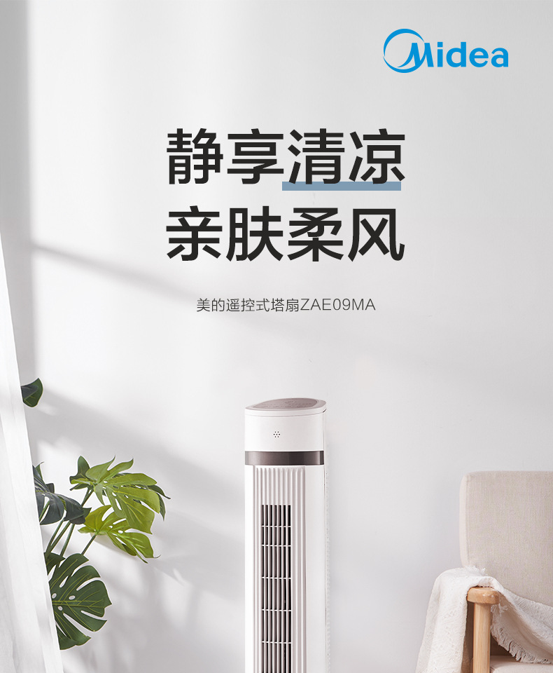美的扇風機タワーファン家庭用広角空気送風ライトサウンドフロアファンオフィス便利なミュート