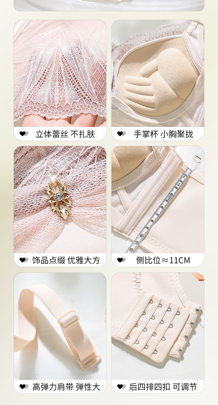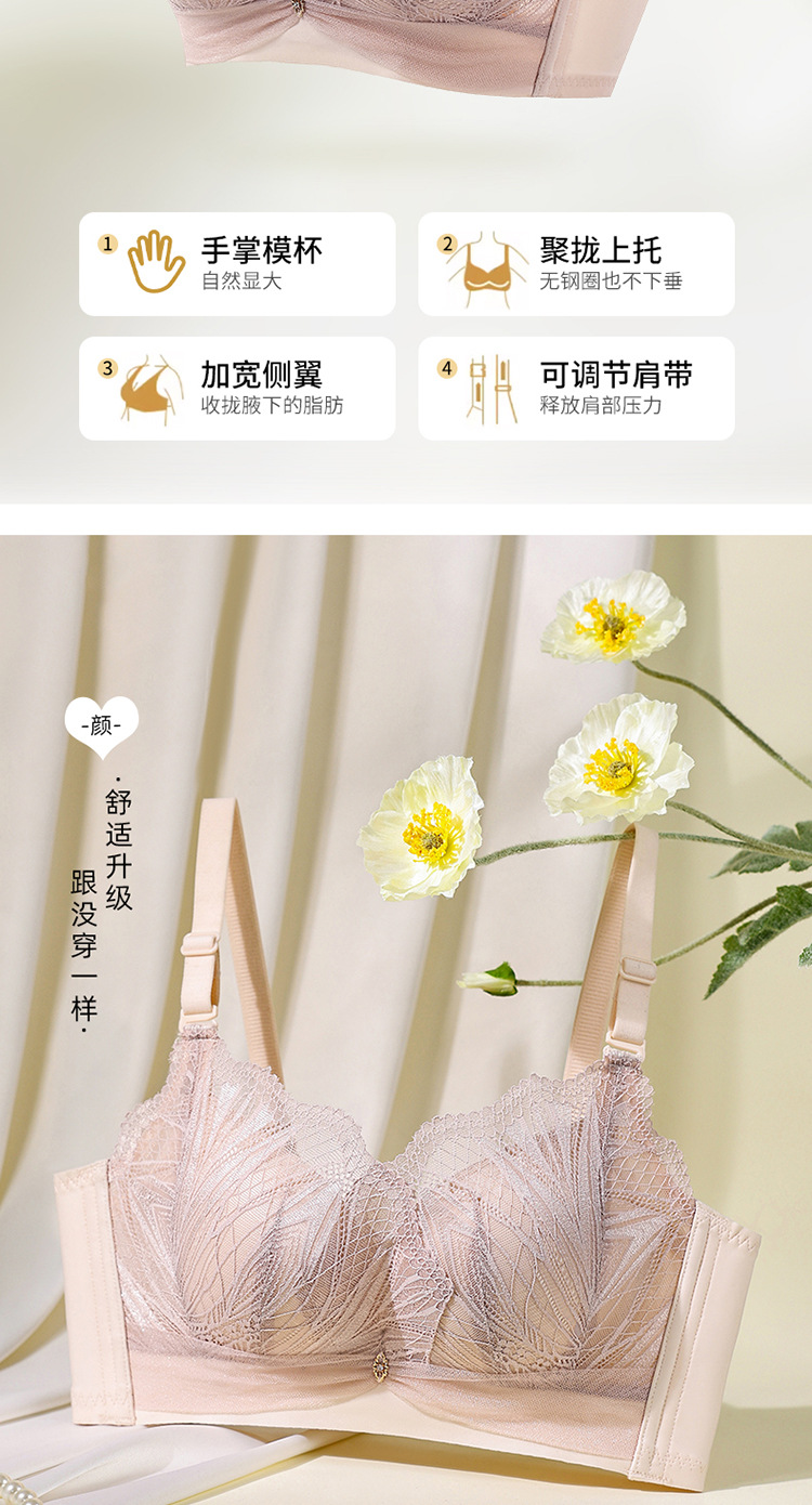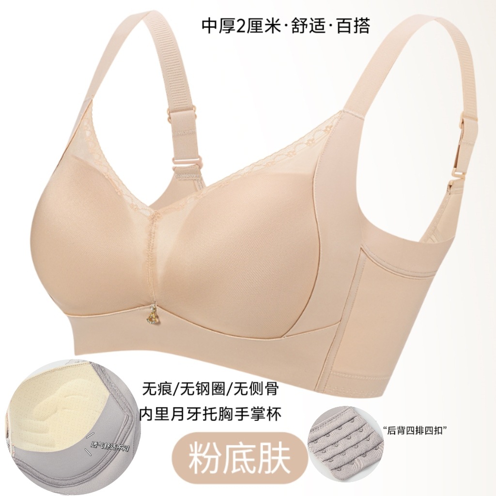 9217項の厚い6cmの小さい胸の平胸は下着の女性の非磁気の無鋼の輪を閉じて副乳の調整型の文のブラジャーを収めます。