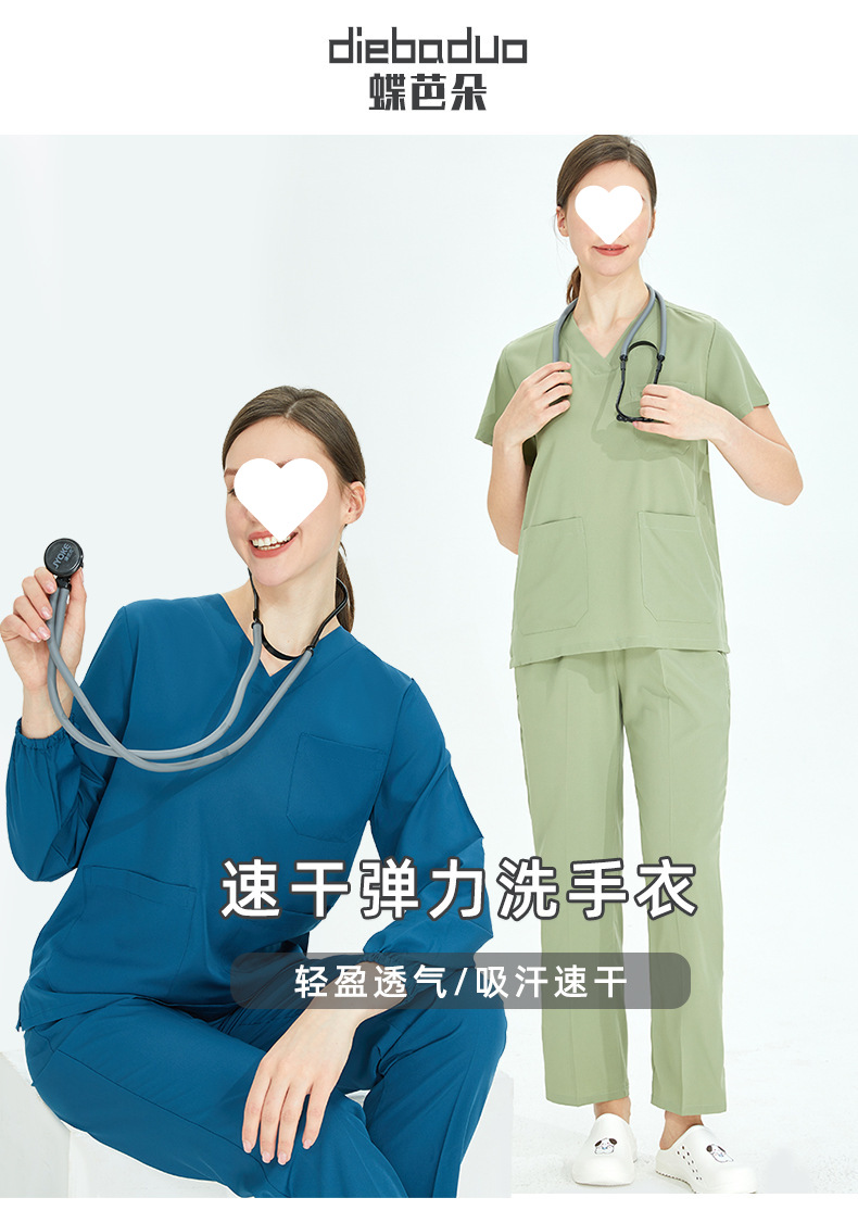 弾力性手洗い服女性速乾手術服手術室ブラシ手服医療歯科医師口腔看護師作業服