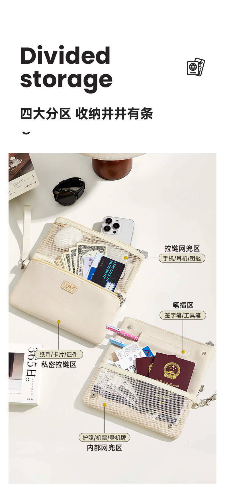 生涯にわたる多機能パスポートバッグ、IDバッグ、旅行チケット、IDカード、ポータブル収納バッグ
