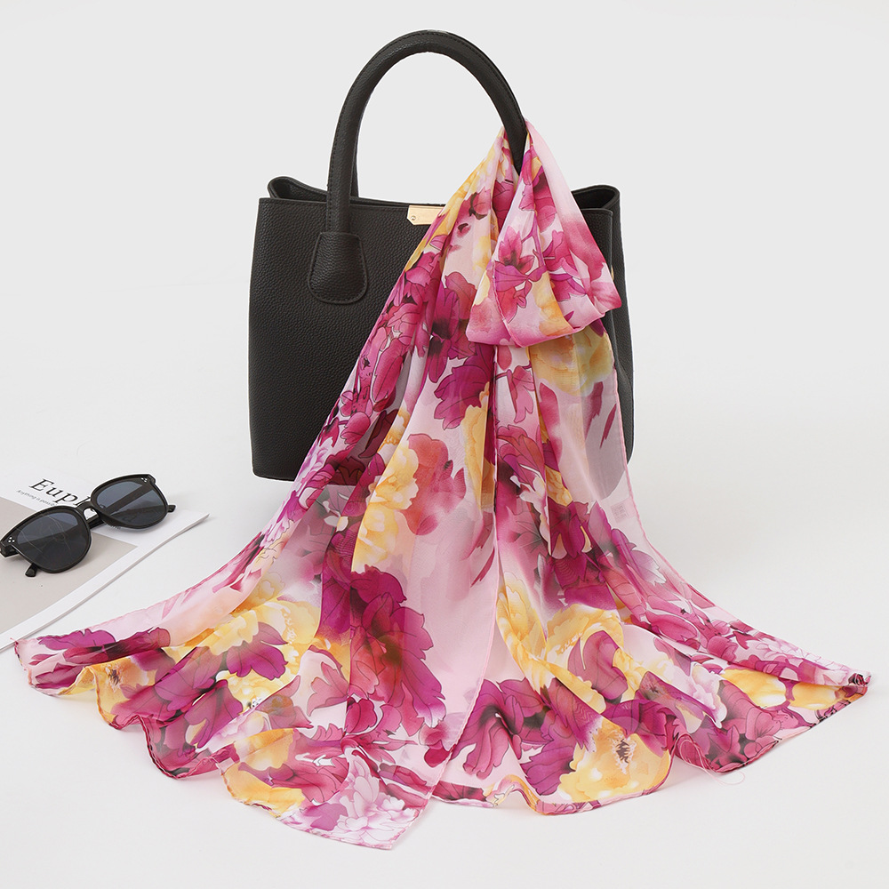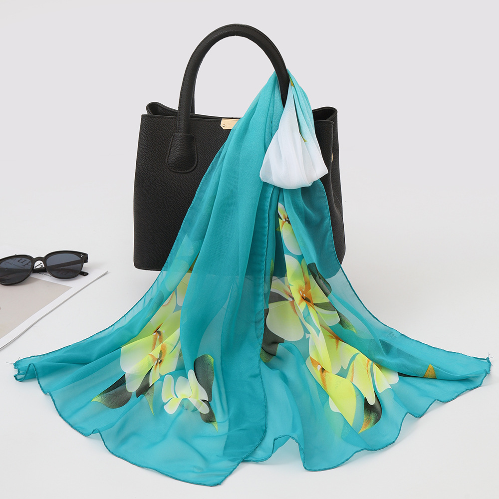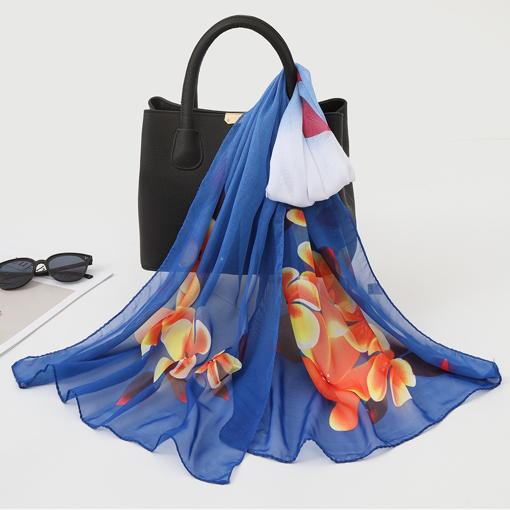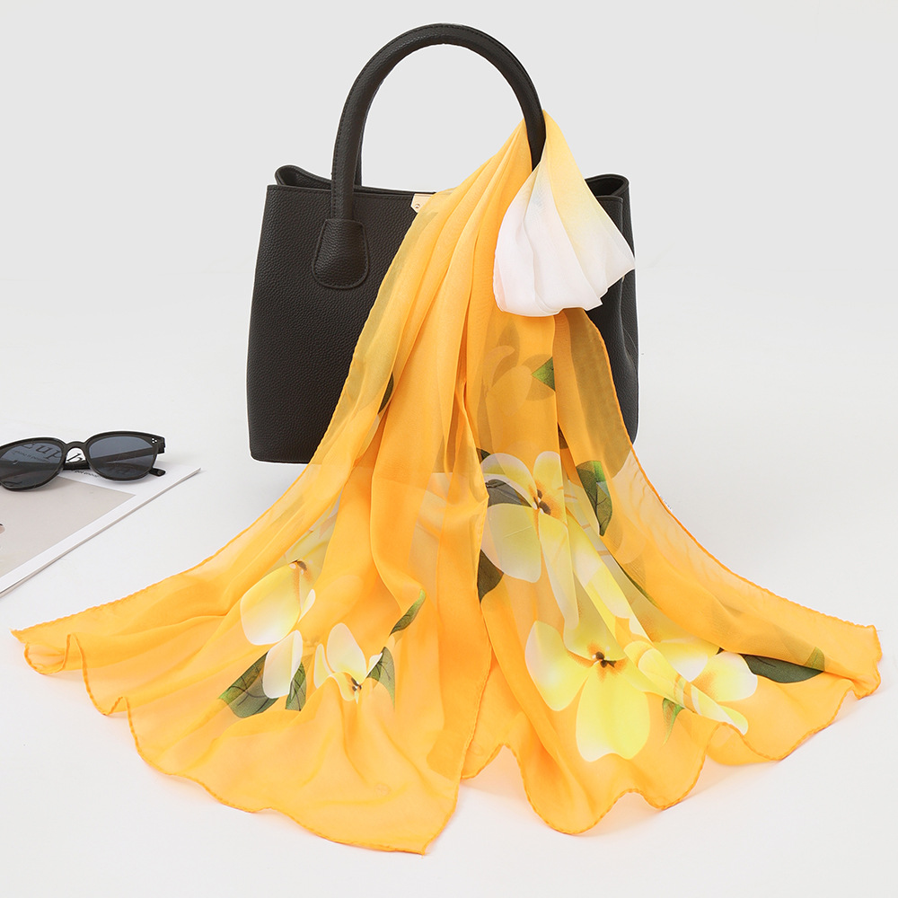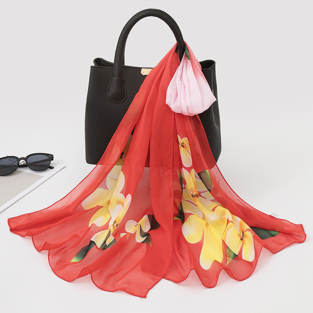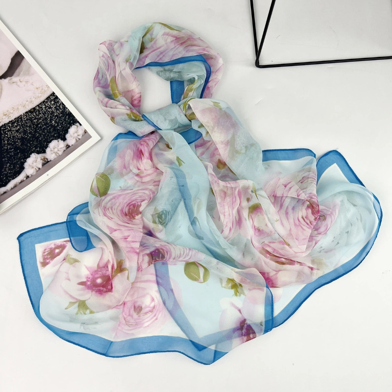 新款丝巾女春夏薄款韩版百搭印花防晒披肩长款雪纺纱巾围巾沙滩巾