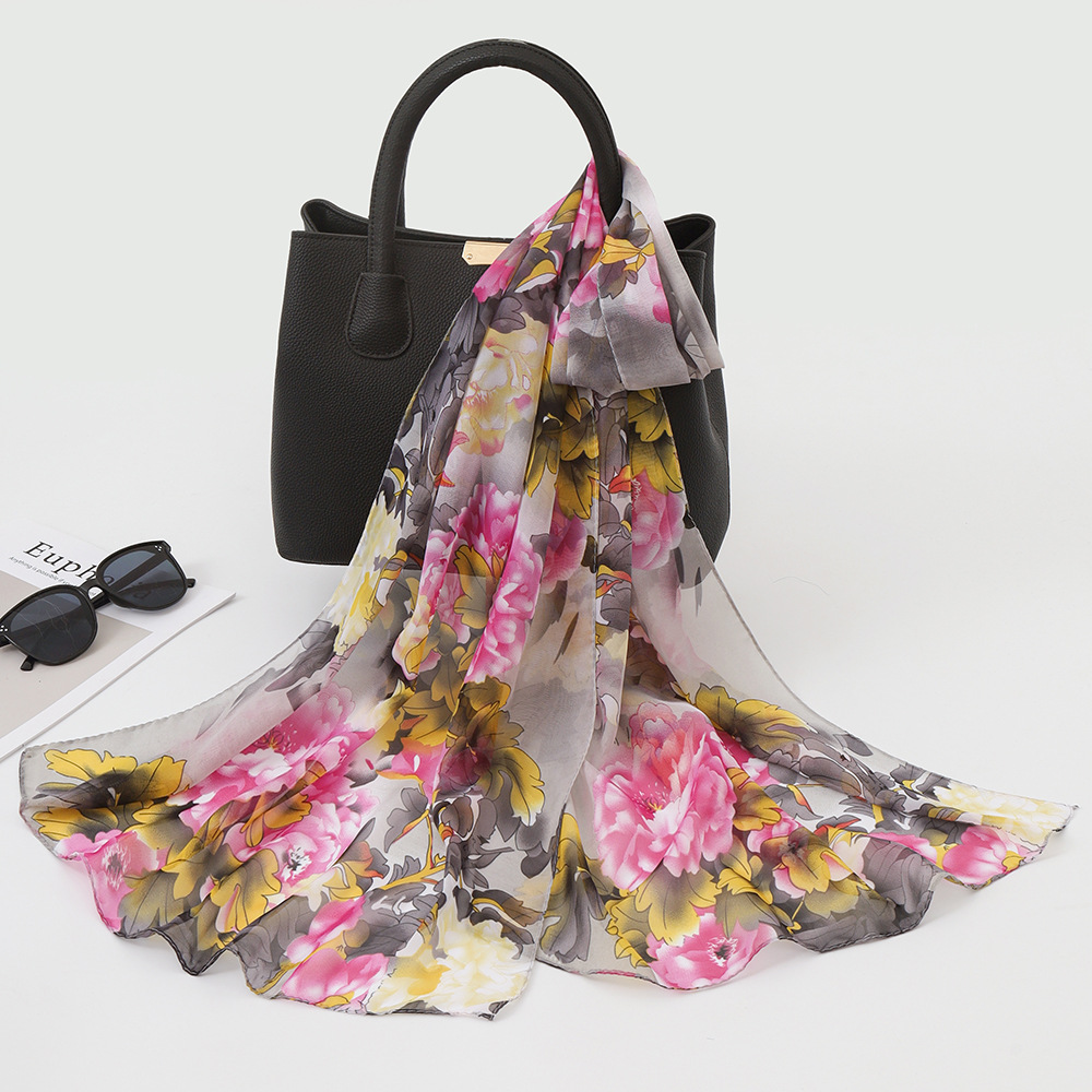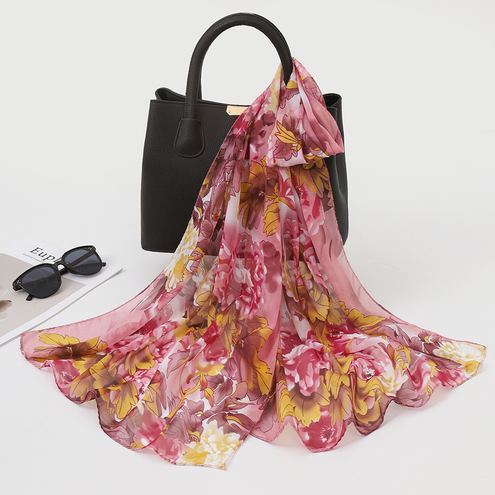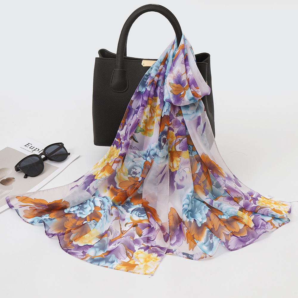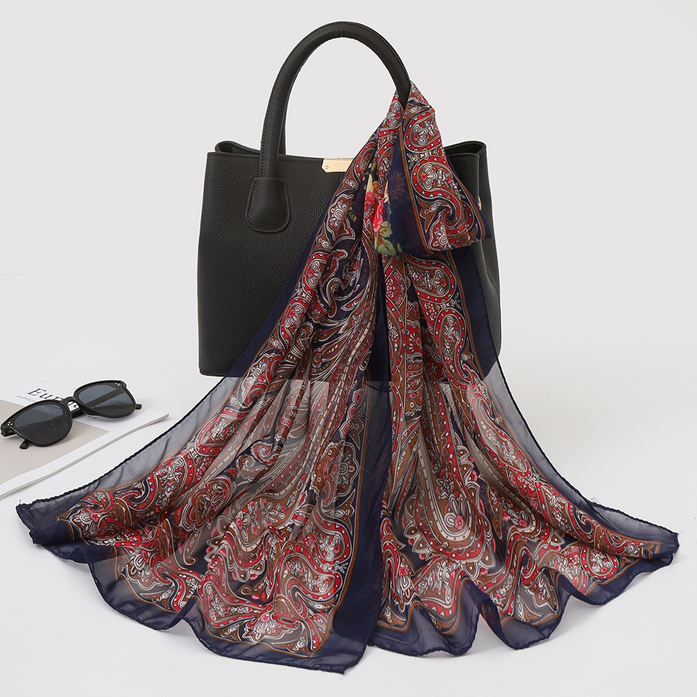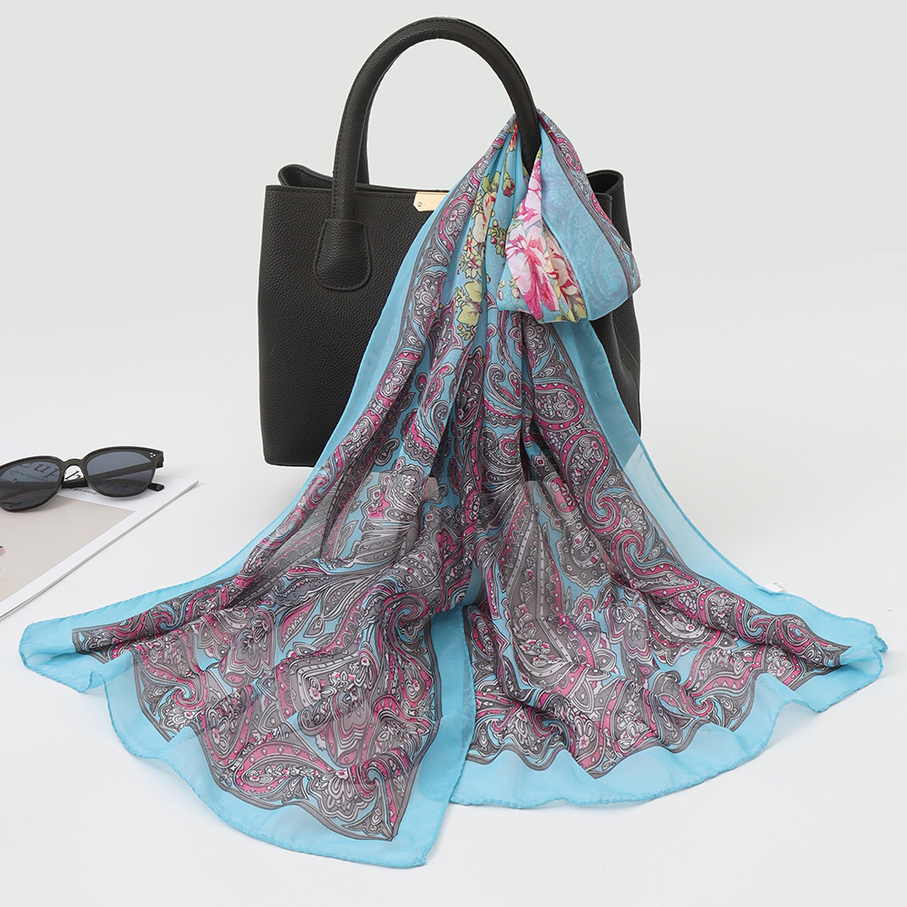新款丝巾女春夏薄款韩版百搭印花防晒披肩长款雪纺纱巾围巾沙滩巾