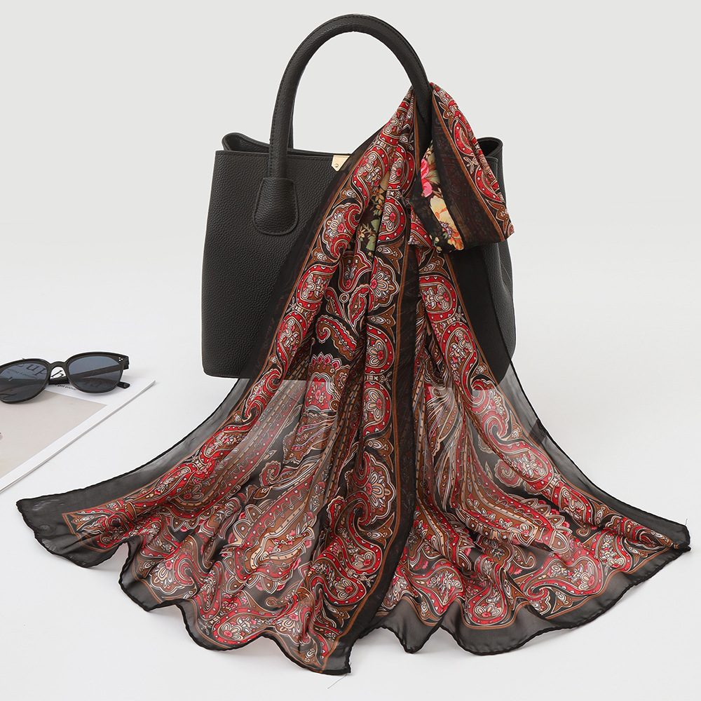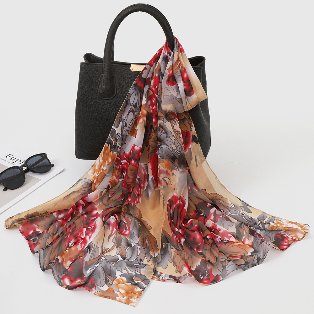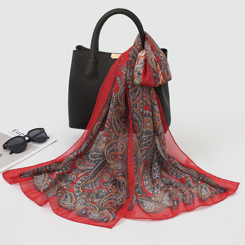 2025春季新款雪纺长丝巾小纱巾女礼品印花丝巾广场舞大妈围巾女小