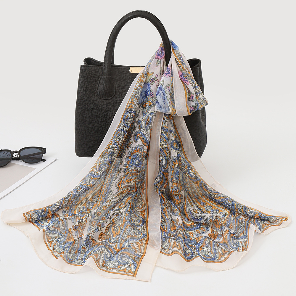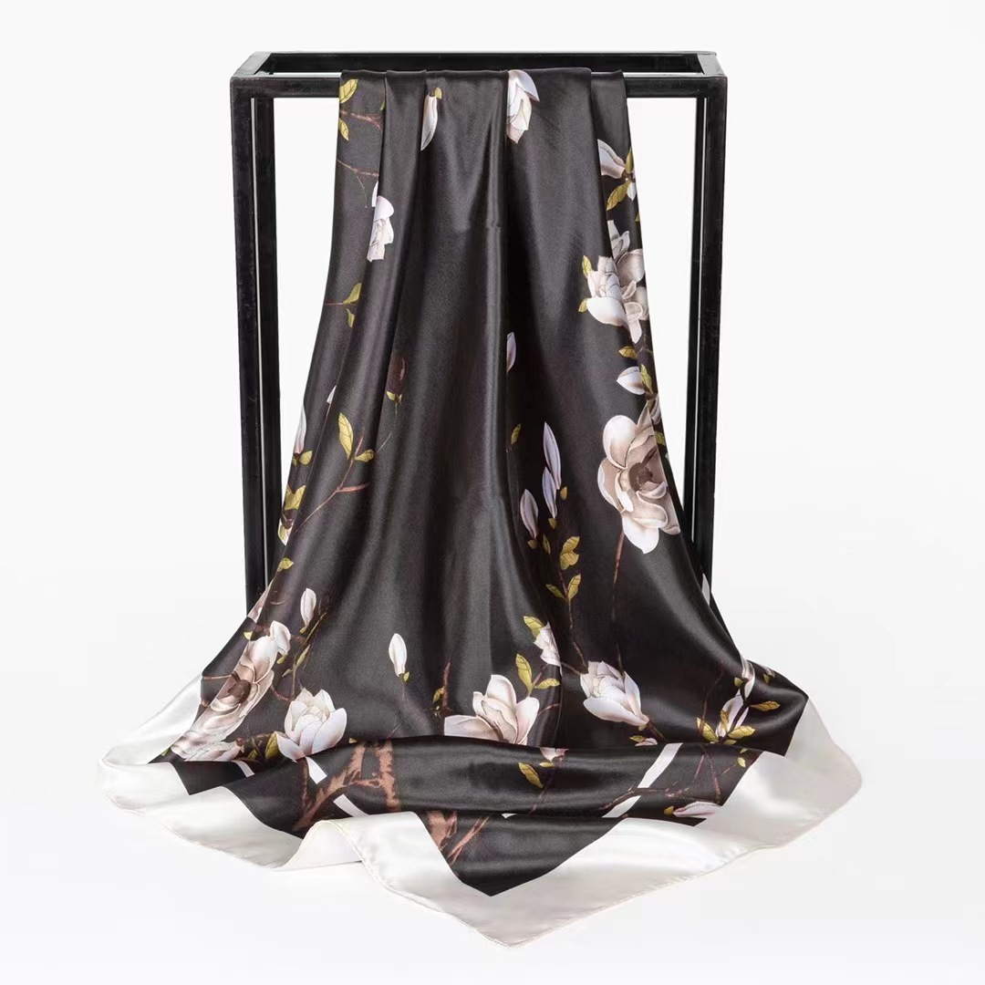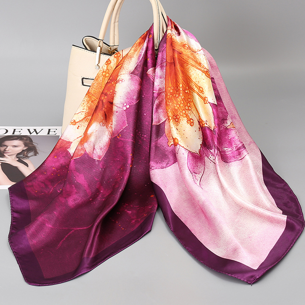 シルクタオル女春秋薄手90角タオル新サテンプリント小砕花中国風マフラー装飾スカーフストール