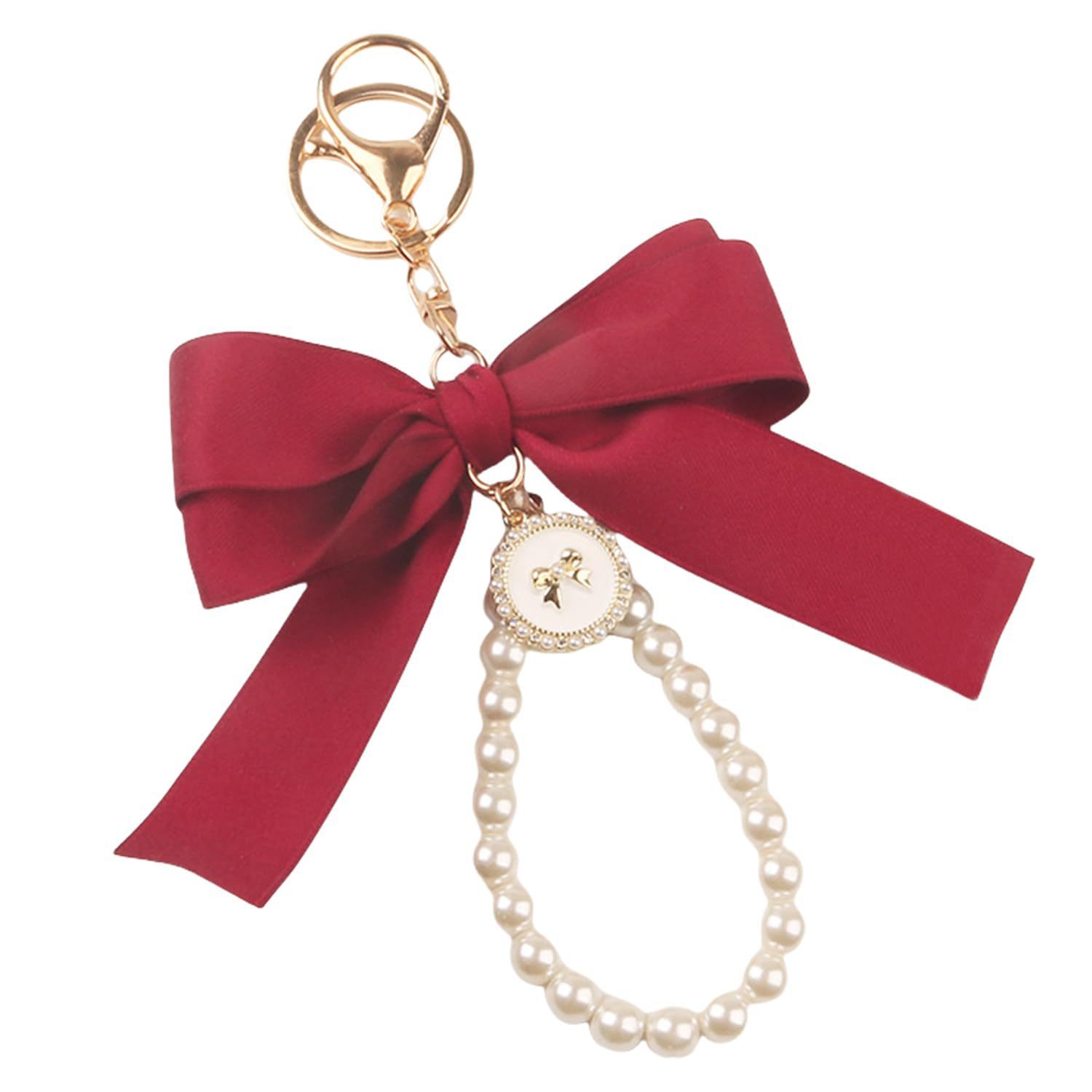 アマゾン人造真珠の大きいサイズの蝶結びのキーホルダーのペンダントのアイデアの小さい香風のカラーのリボンの部品の装飾