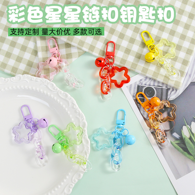 アクリル透明五角星チェーンキーホルダーdiyペンダントカラー鈴アクセサリーアクセサリー