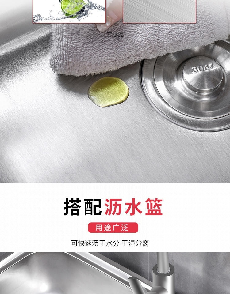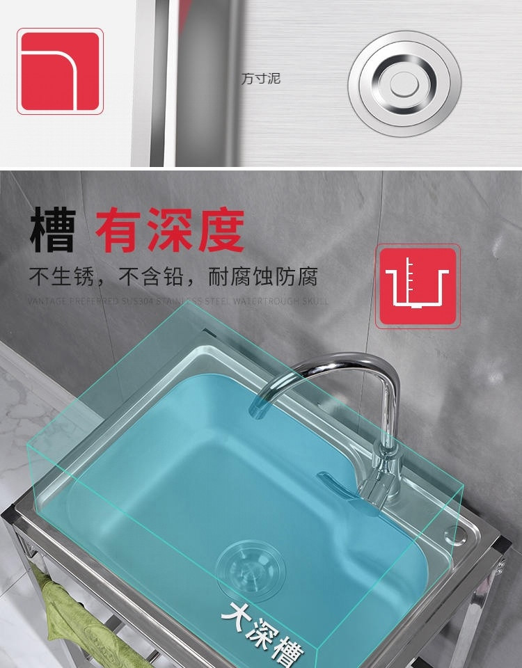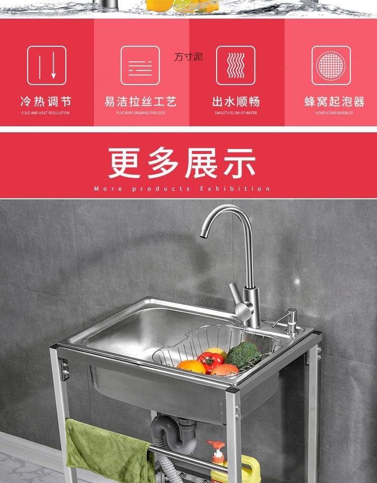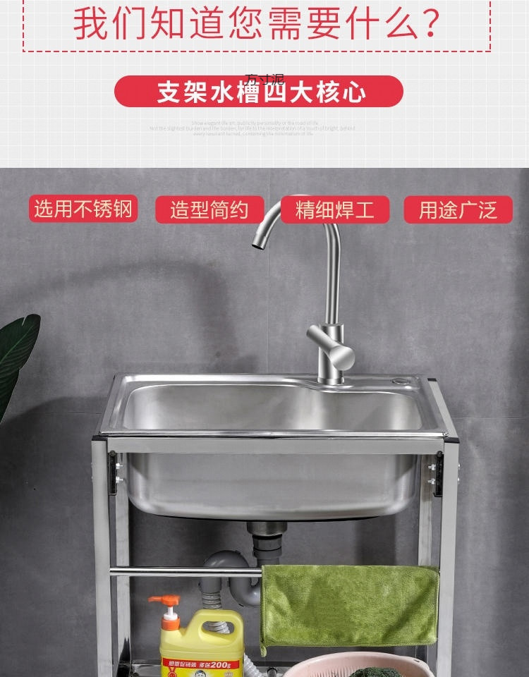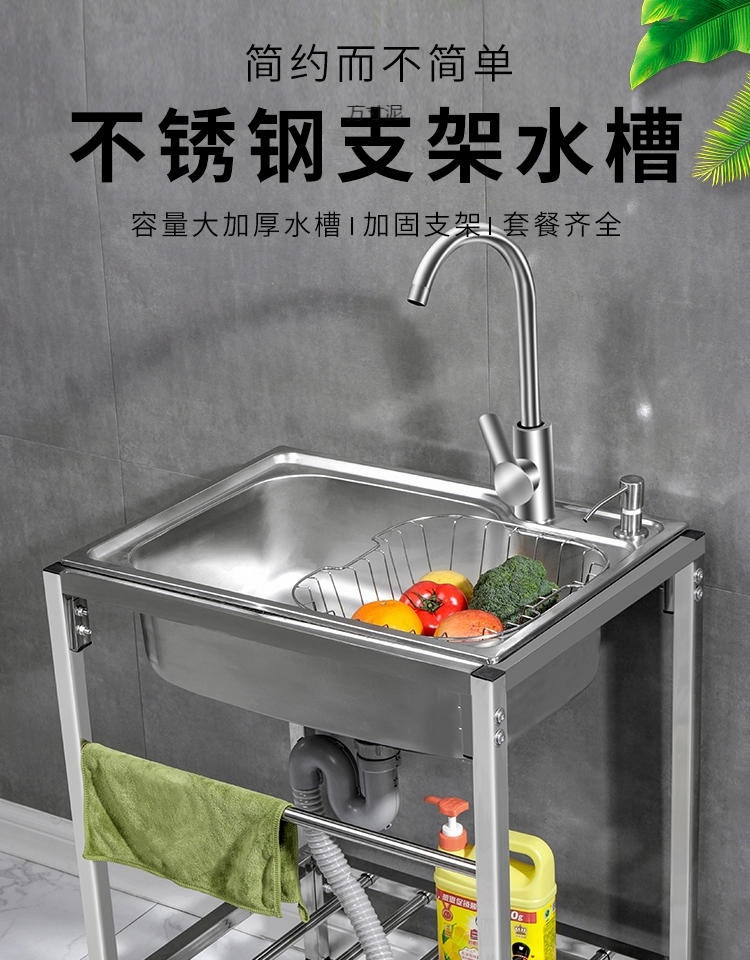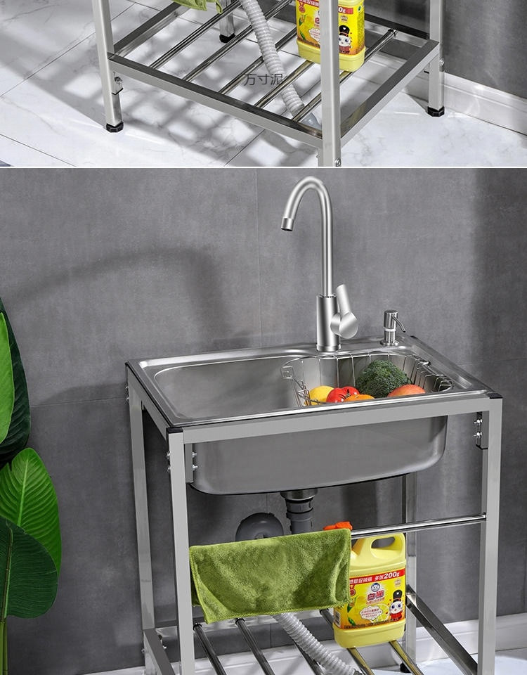キッチンシンプルな 304 ステンレス鋼水シングル家庭用シンク洗面器スタンド付き洗面器シンク一体型洗面器卸売