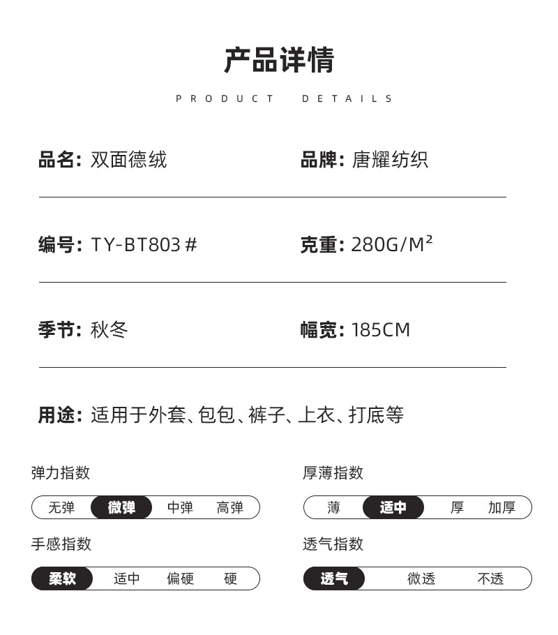 260g羅紋徳絨毛両面徳絨毛とベルベットのニット生地秋冬保温下着生地