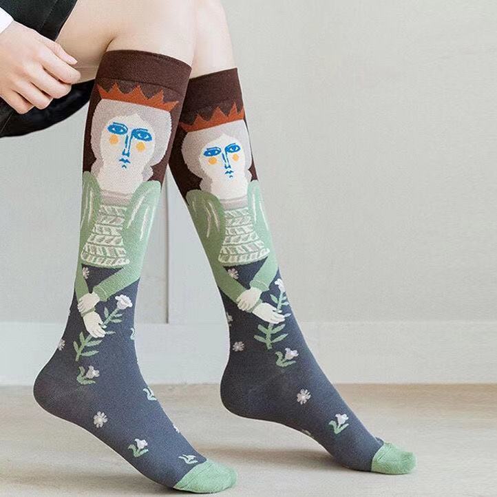 トレンディな靴下レトロカレッジスタイル油絵クリエイティブカラフルなメンズソックス秋の女性の韓国スタイルミッドカーフソックスINSイラストパーソナライズ