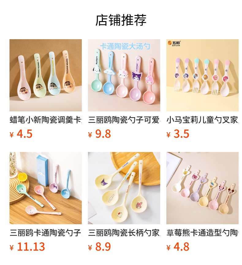 サンリオの漫画の陶磁器のスプーンの家庭用のスープの長い柄の大きいスープのスプーンの高い顔の値のかわいいスプーンの個性の大きいスープ