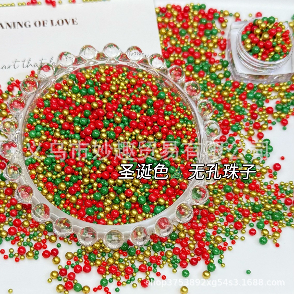美甲饰品圣诞节diy素材混装烤漆玻璃无孔彩珠子手工穿戴甲饰材料
