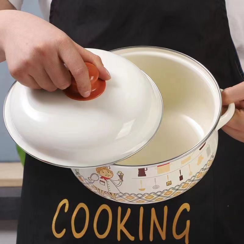 高颜值加厚珐琅搪瓷锅汤锅家用双耳猪油盆仿砂锅炖锅电磁炉燃气用