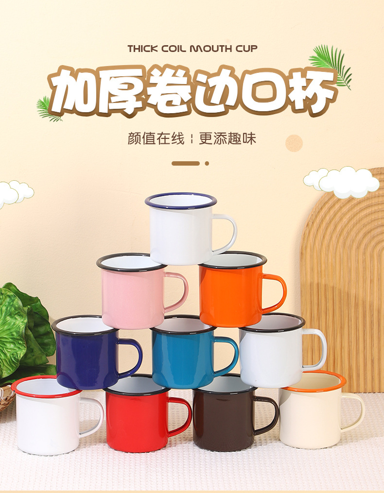 厚みのあるエナメルカップ、カーリングカップ、厚みのあるホームスタイルのシンプルなコーヒーカップ、エナメルマグカップ、エナメルカップ