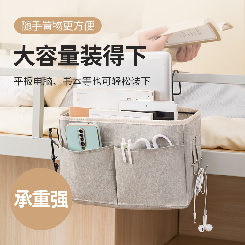 寮の学生ベッドのそばに袋を掛けて多目的収納物を収納します。