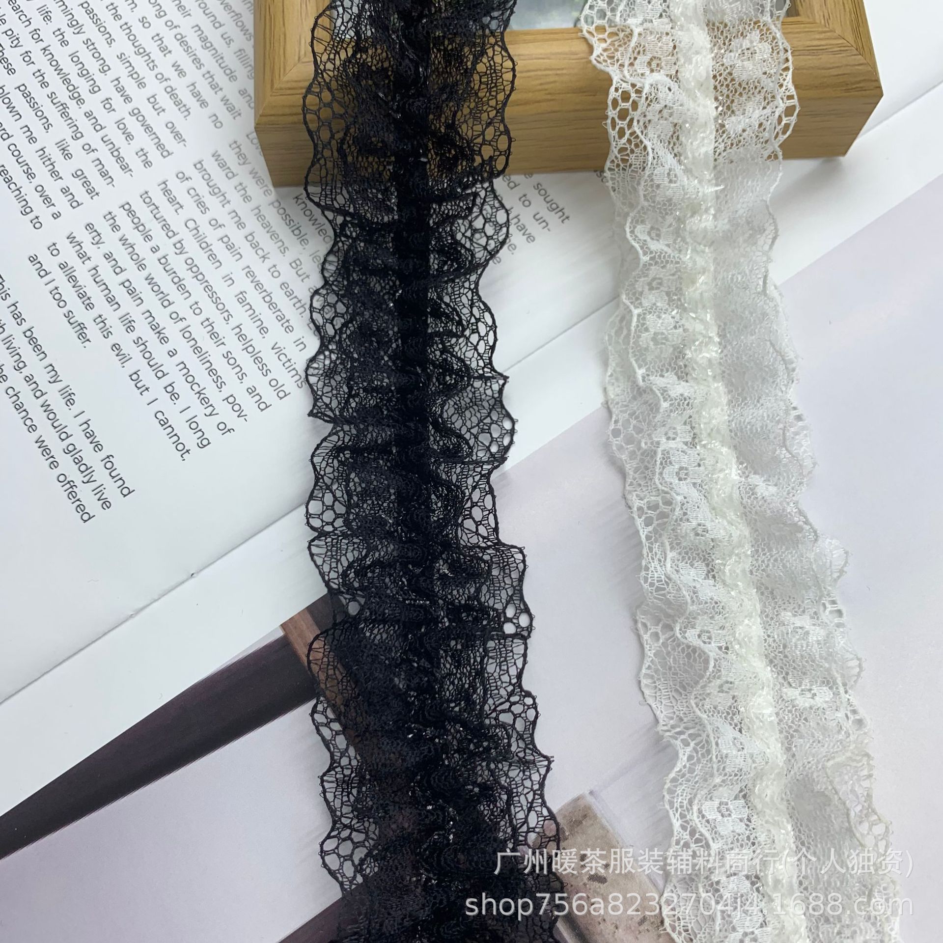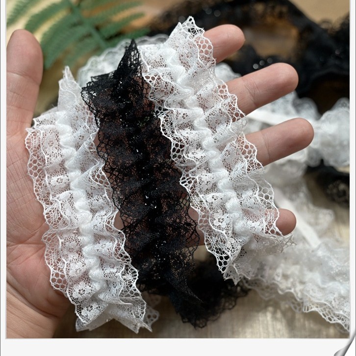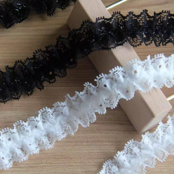 2.5厘米宽 黑白色弹性蕾丝皱褶花边辅料木耳边荷叶松紧带花边带