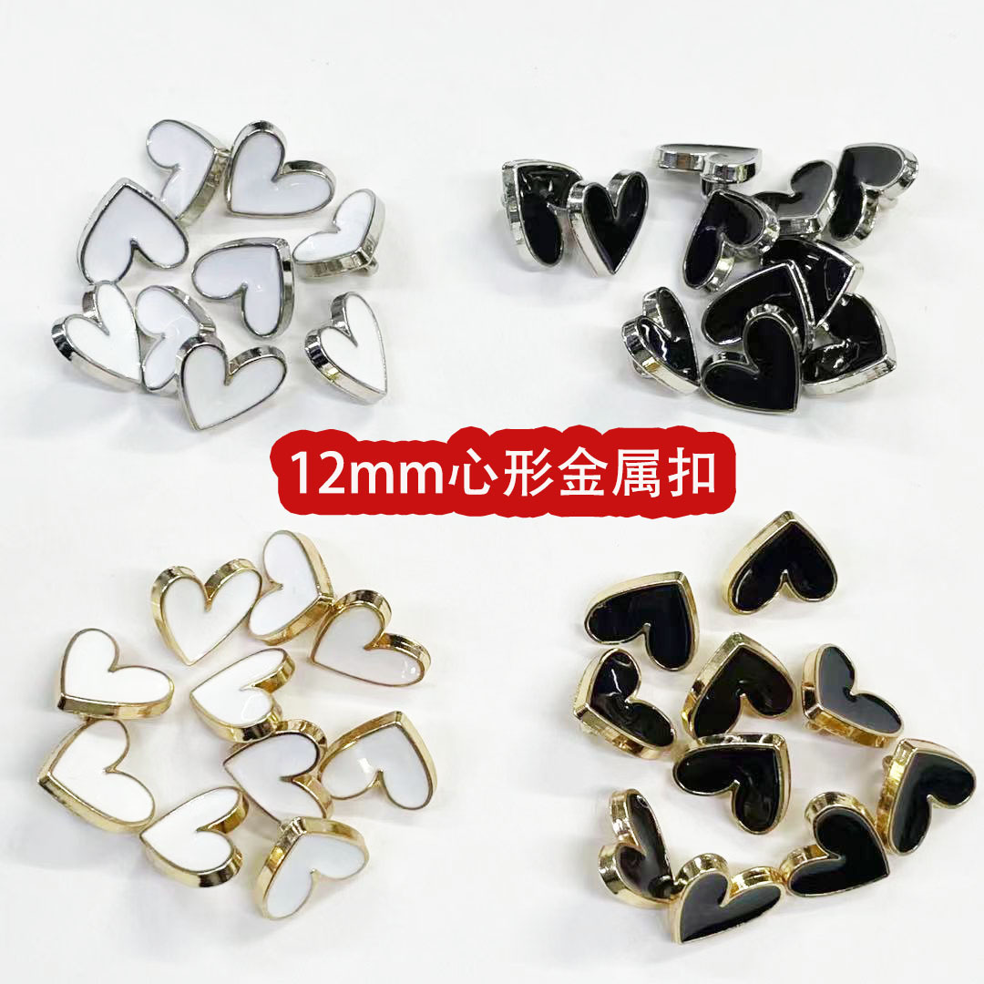【愛ハート型シャツボタン】金属白黒油桃心ボタンシャツスカートセーター前立て飾りボタン