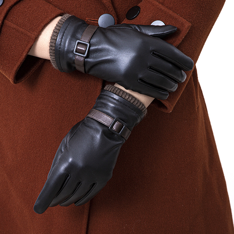 谷獅子登真皮手袋冬女性保温手袋卸売り戸外羊皮手袋とベルベットが国境を越えた