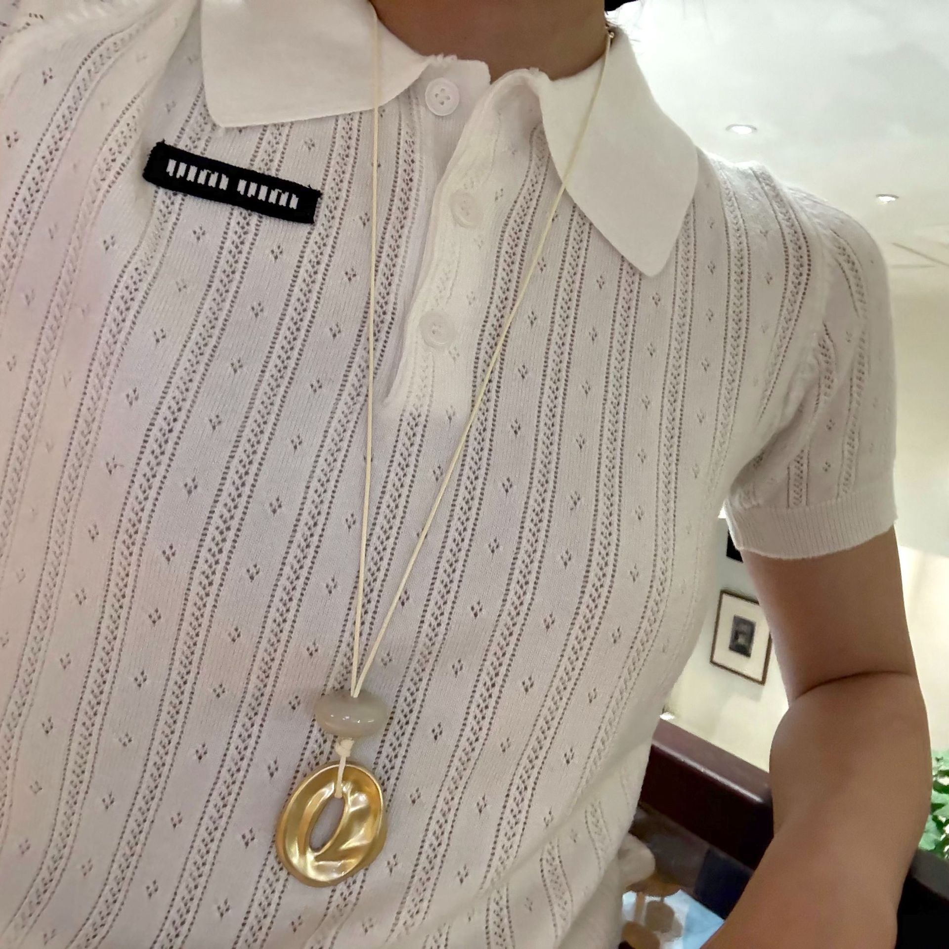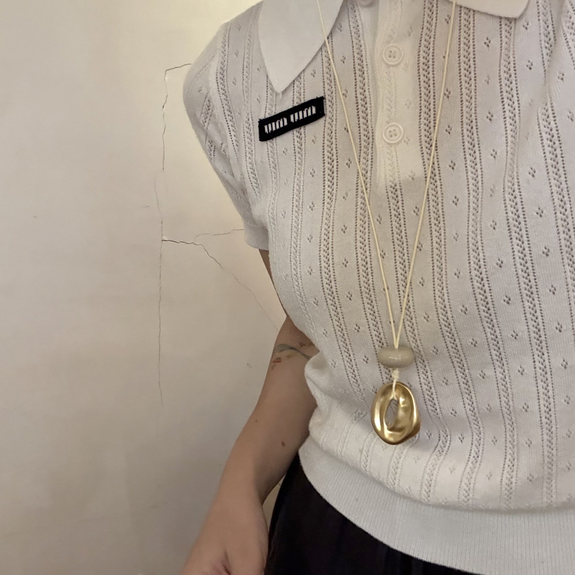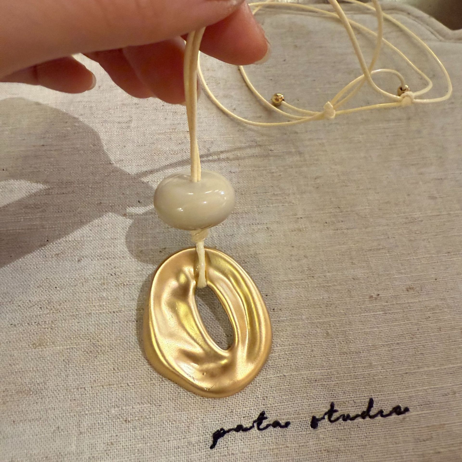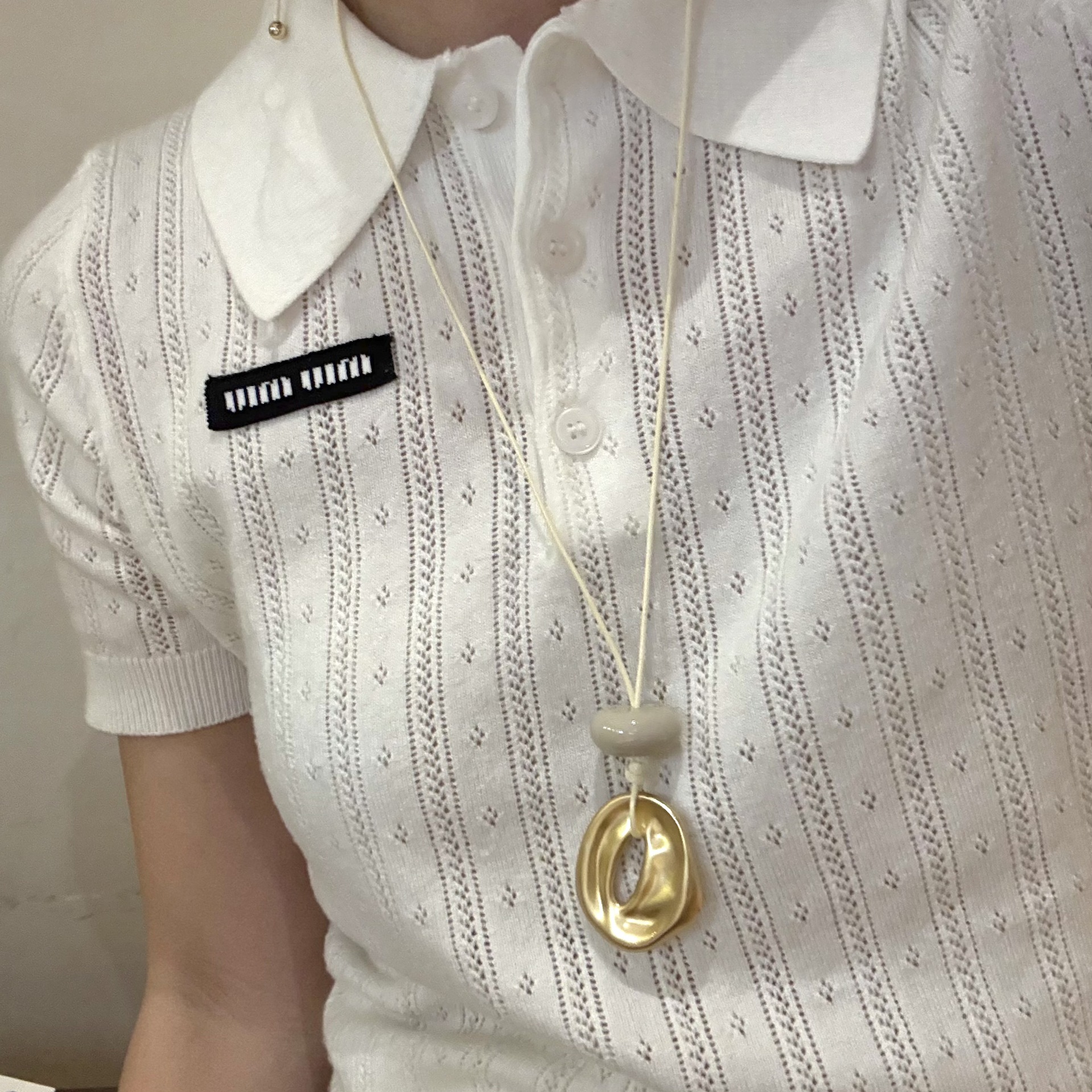 チタン鋼炉内金メッキ18kシンプル気質楕円軽量贅沢白貝ネックレス色落ちしないins耳ボタン