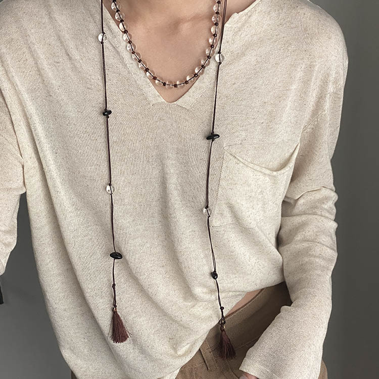 黒水晶長い水滴真珠ペンダントネックレス天然石ビーズ個性小衆ファッションins鎖骨鎖女