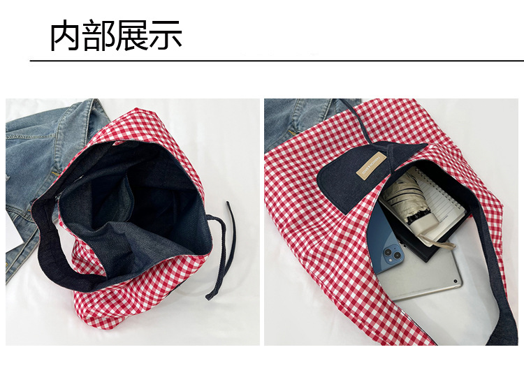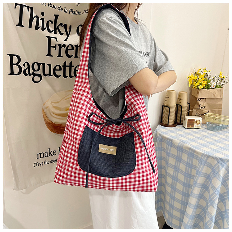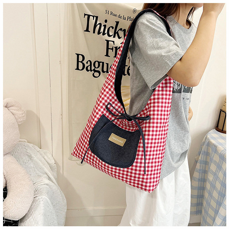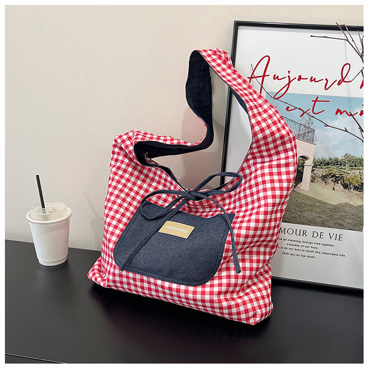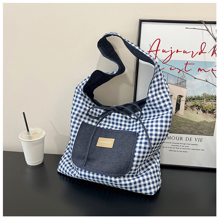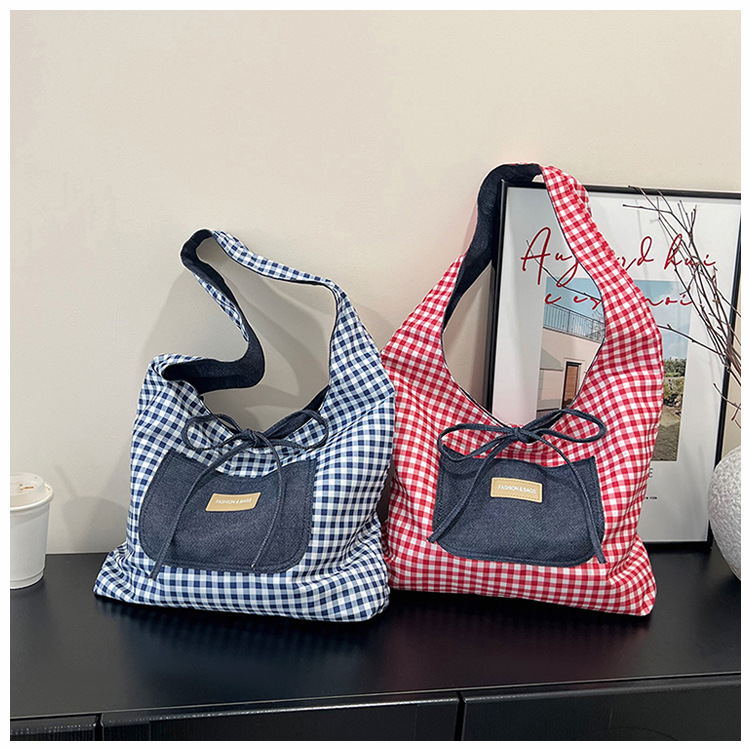 格子縞のバッグの女性の大容量2025新型春の流行カジュアルなシングル肩の小さなデザインのシングル肩のバッグ