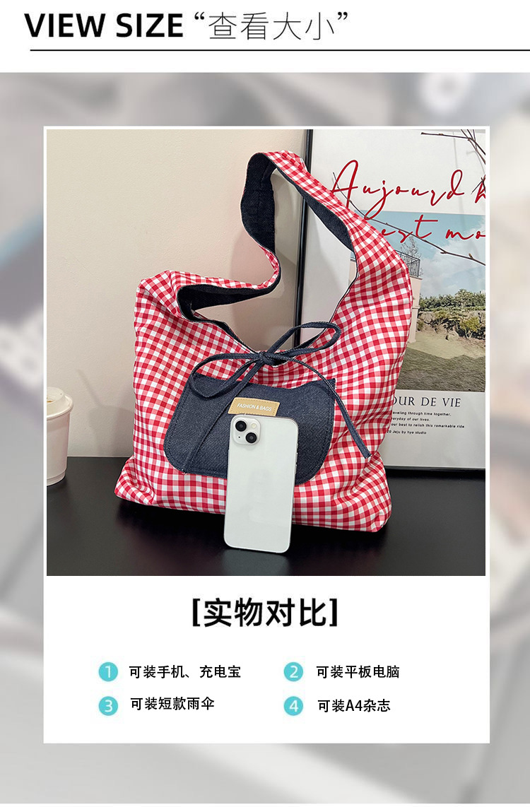 2025秋冬季新款通勤格纹单肩包时尚简约小众设计大容量托特布包包