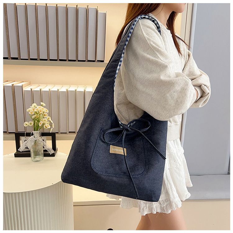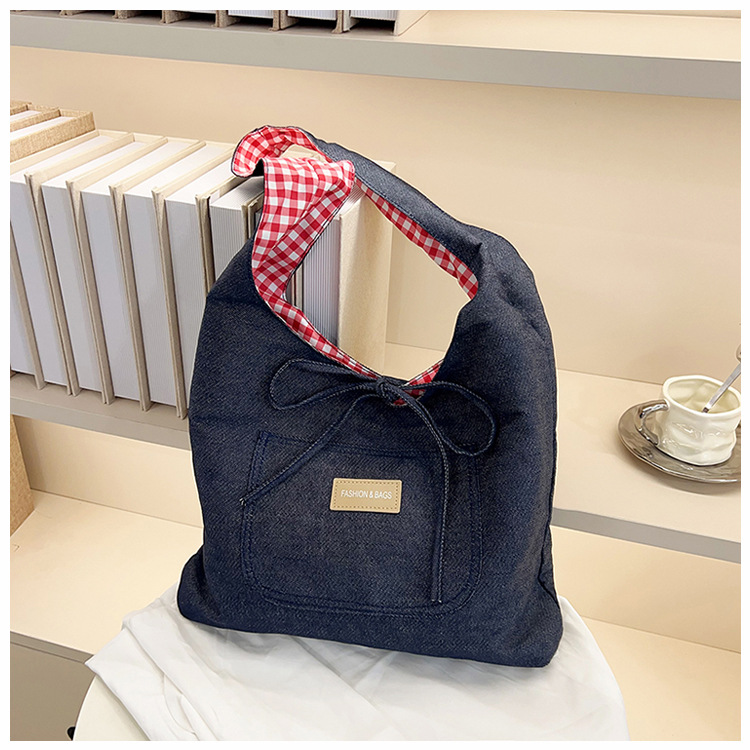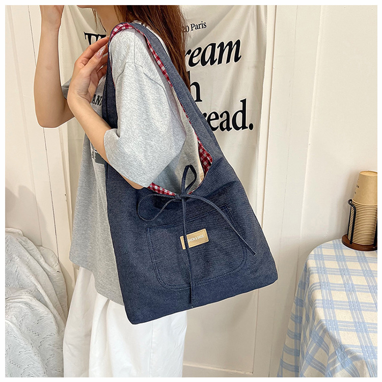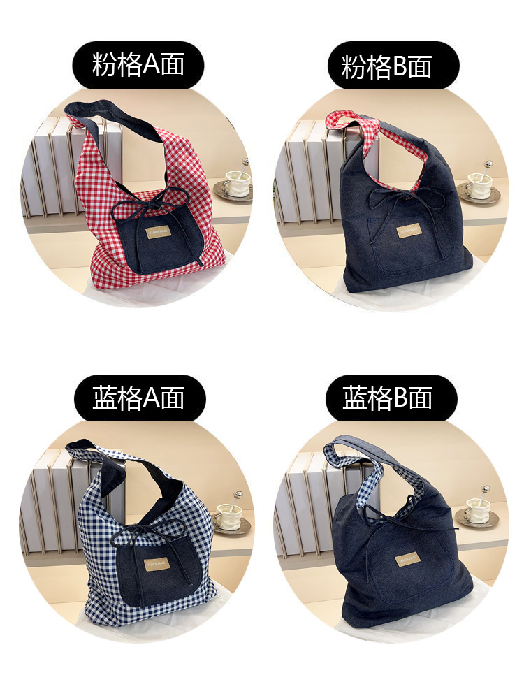 新しいデニムの両面のカバンの女性の百合の大容量の格子のカバンはシンプルです。