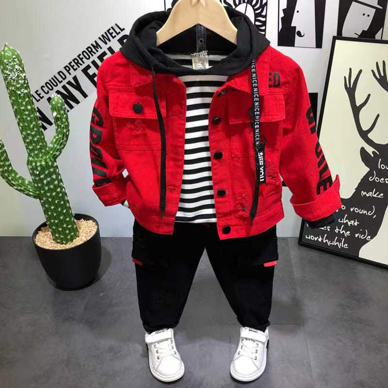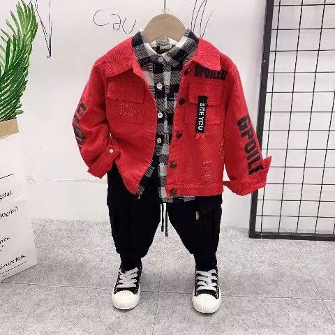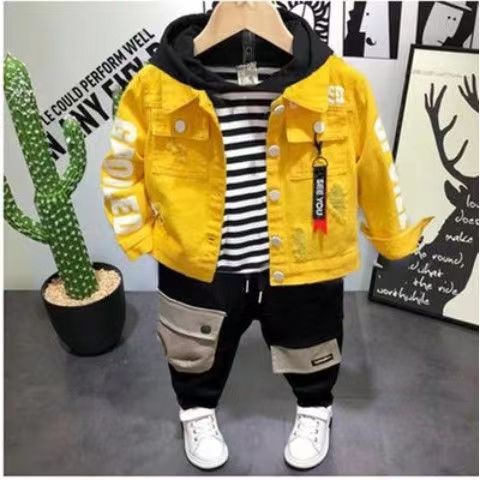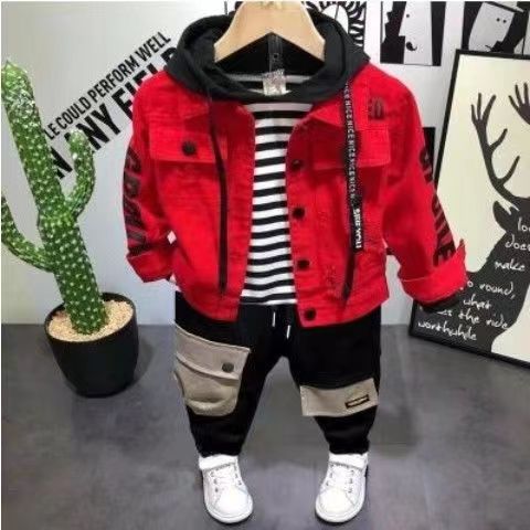 男の子秋服セット 2021 新しいスタイル 2 韓国風 3 デニム 3 点セット 4 トレンディな子供服ベビー 5 ハンサム