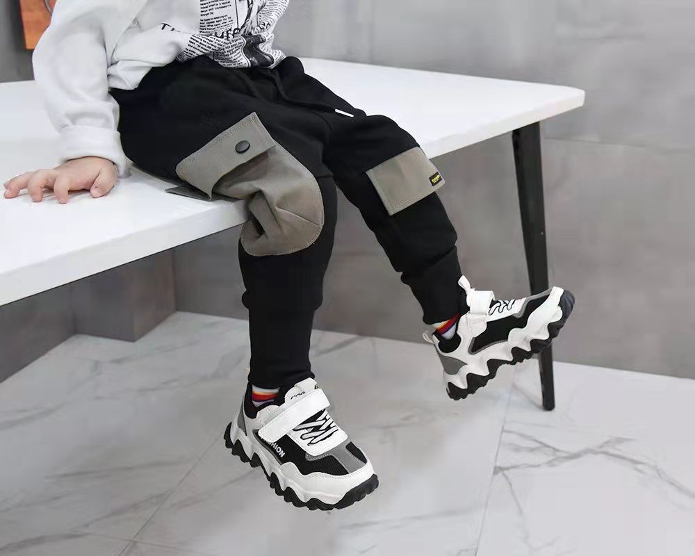 子供の黒と白のストレッチカジュアルパンツ 2024 秋と冬の新しい韓国スタイルの男の子カジュアルパンツ女の子スリムフィットパンツ